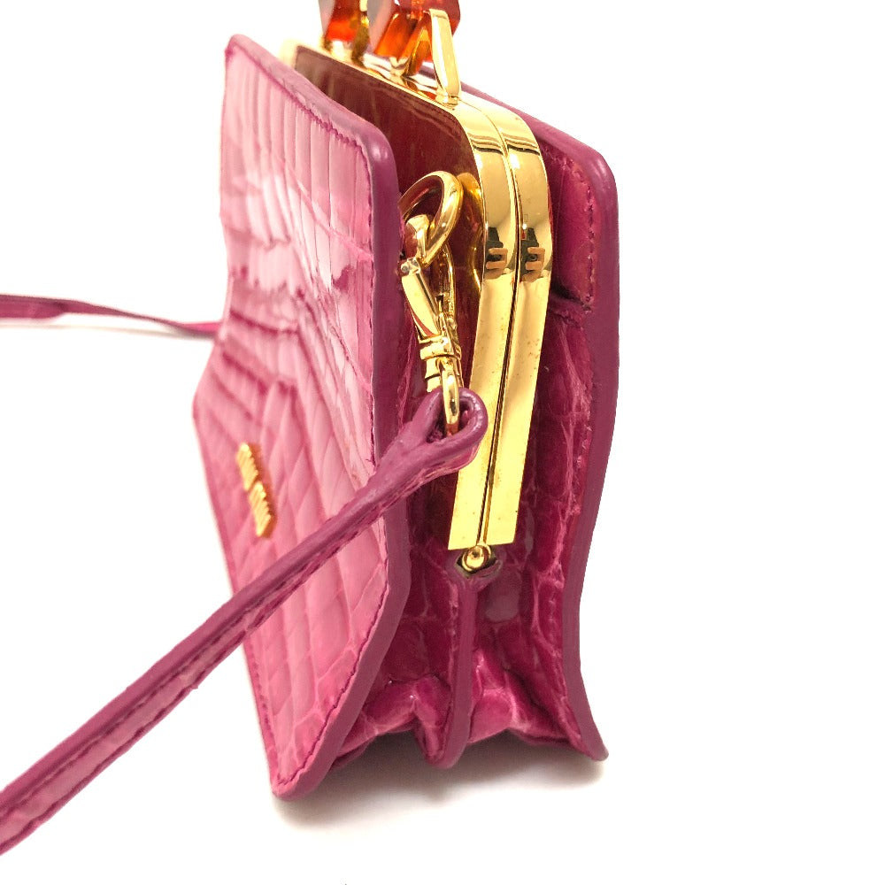 MIUMIU Shoulder Bag leather pink Gamaguchi Women Used Authentic
