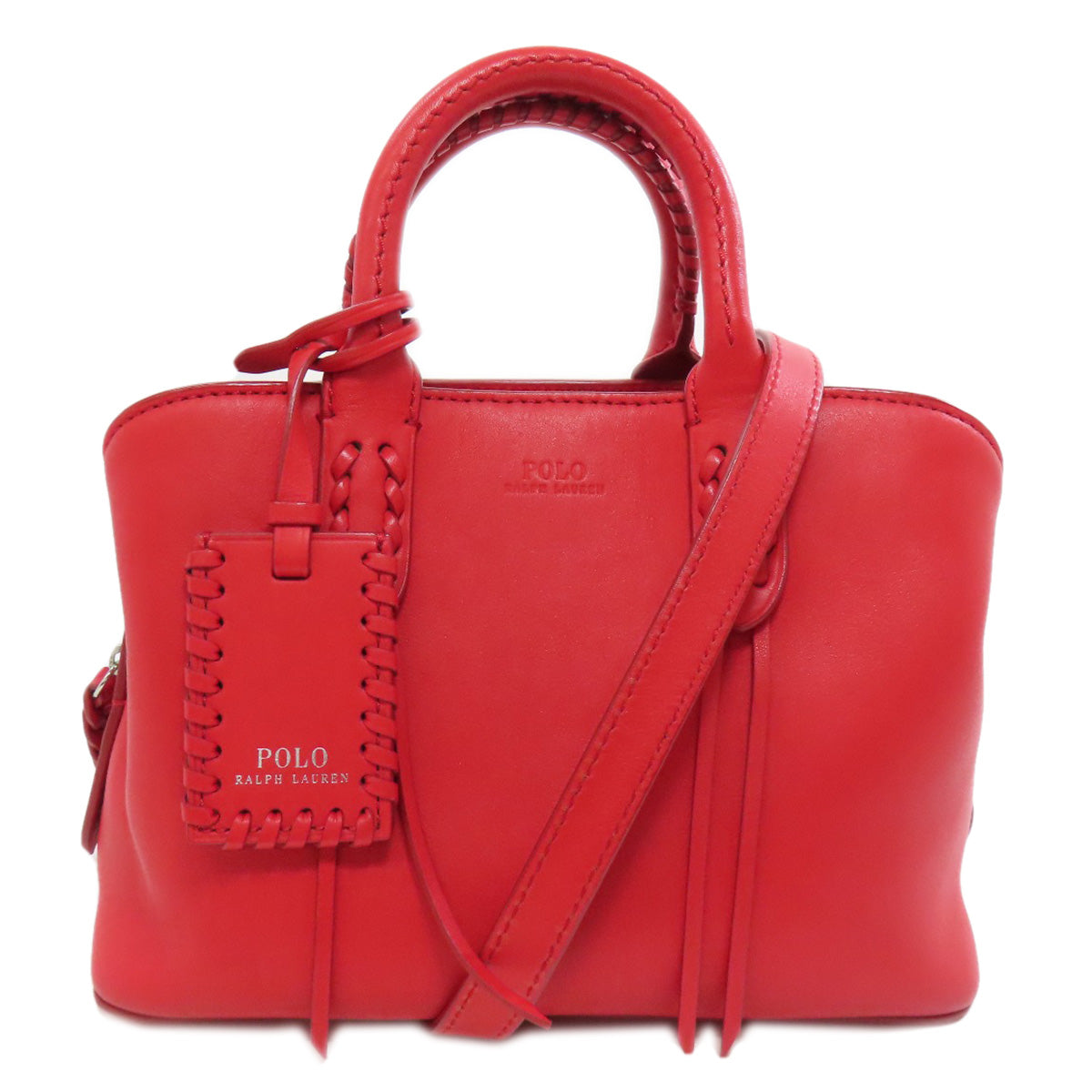 POLO RALPH LAUREN Handbag leather Red 2WAY Women Used Authentic