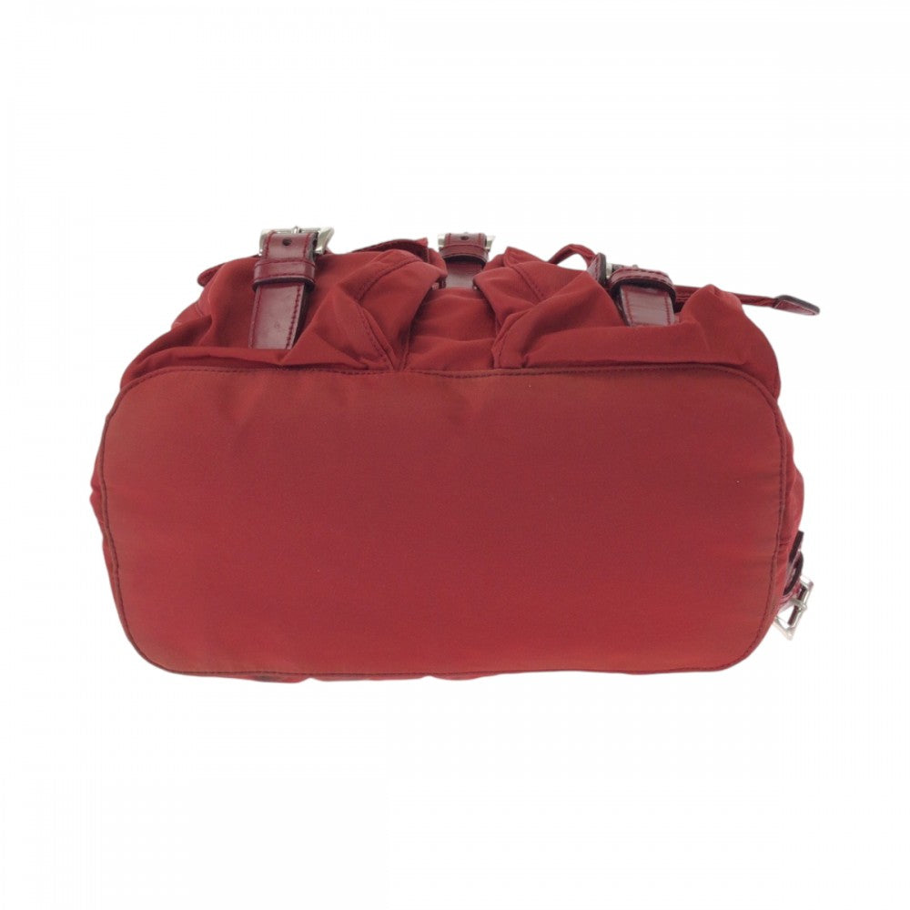 PRADA Backpack Nylon Red Silver Metal Backpack Backpack Test Triangle With logo Women Used Authentic