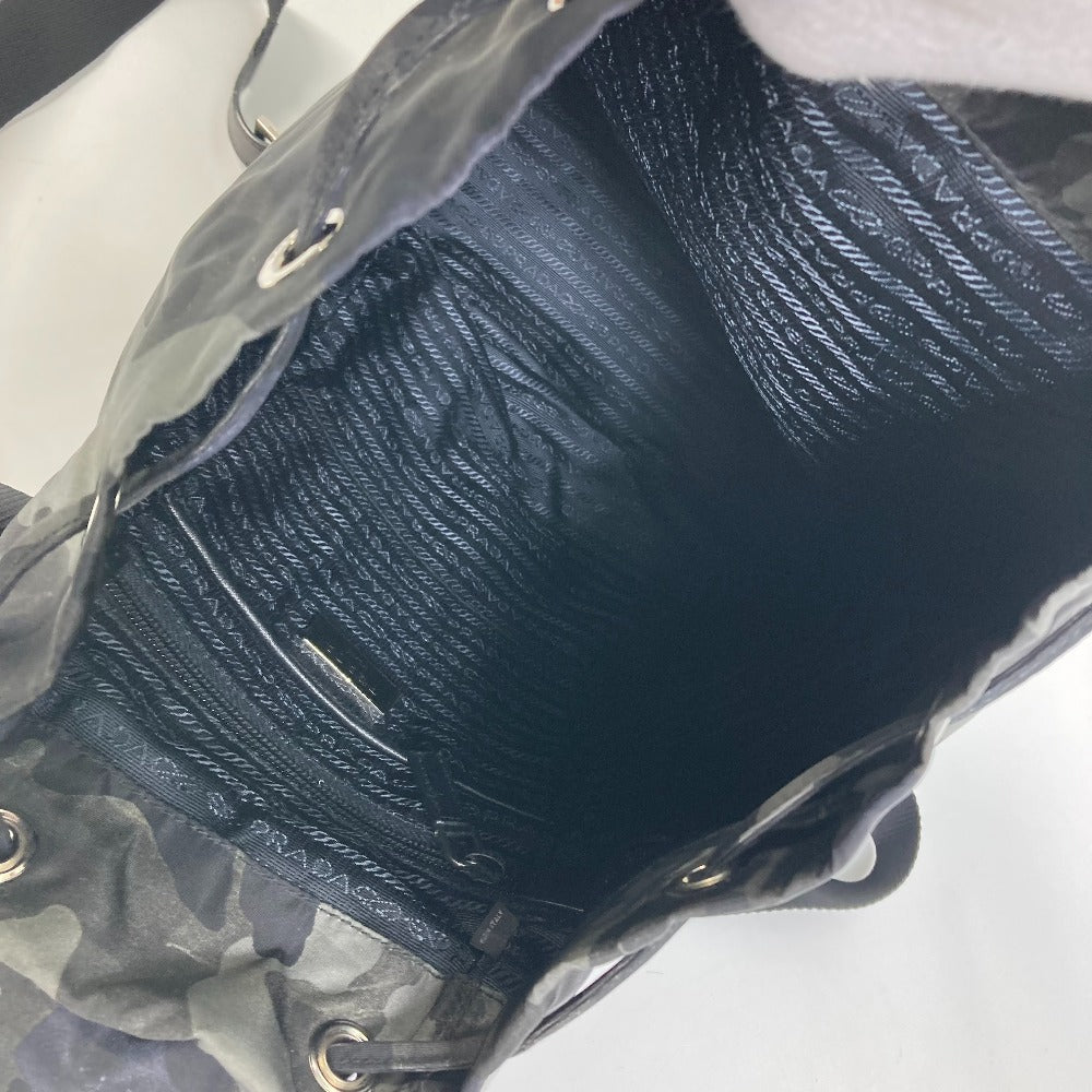 PRADA Backpack Nylon, Saffiano leather green Triangle logo camouflage camouflage saffiano