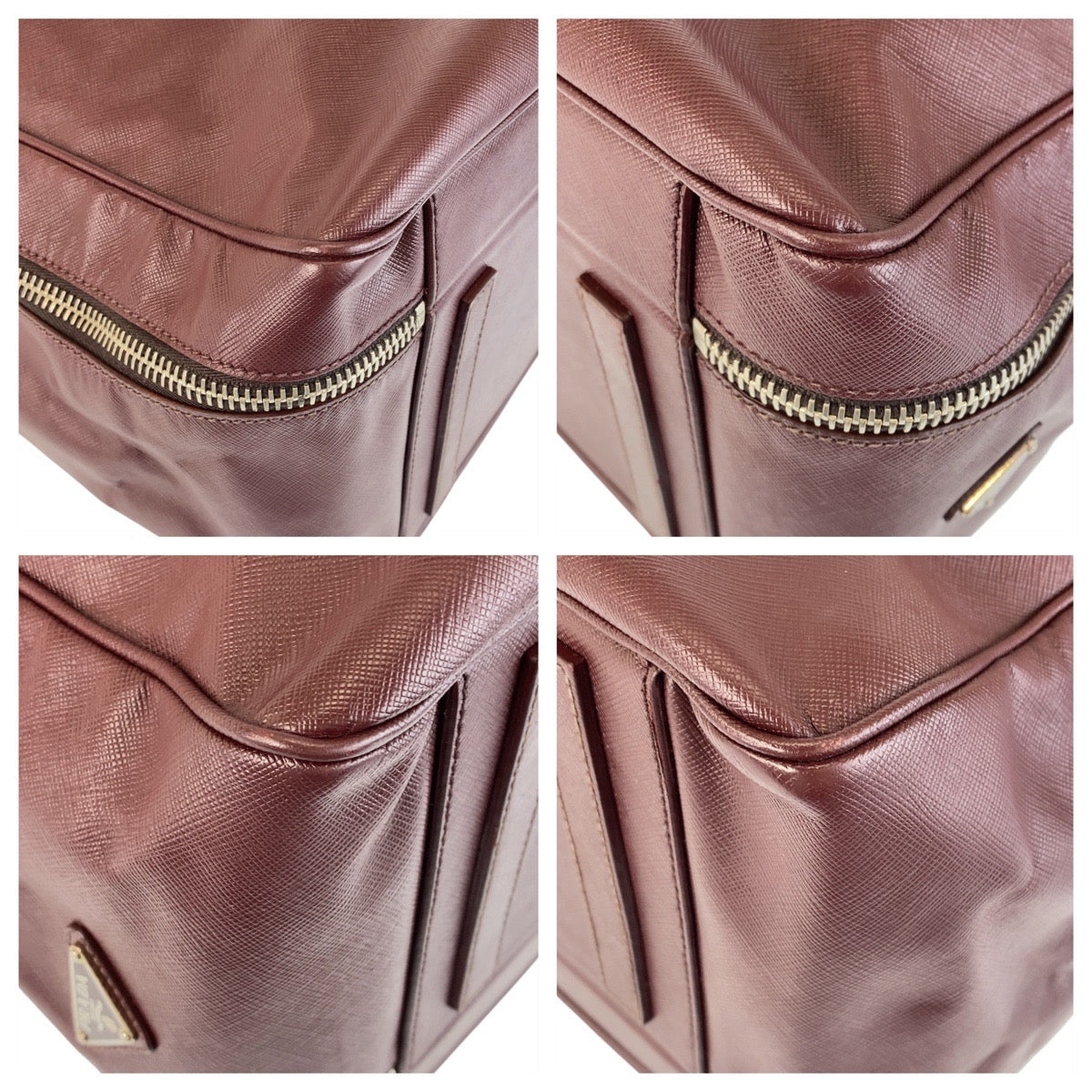 PRADA Boston Duffel bag leather Wine Red SilverMetal Boston Duffel bag Business bag Safiano Triangle With logo mens Used Authentic