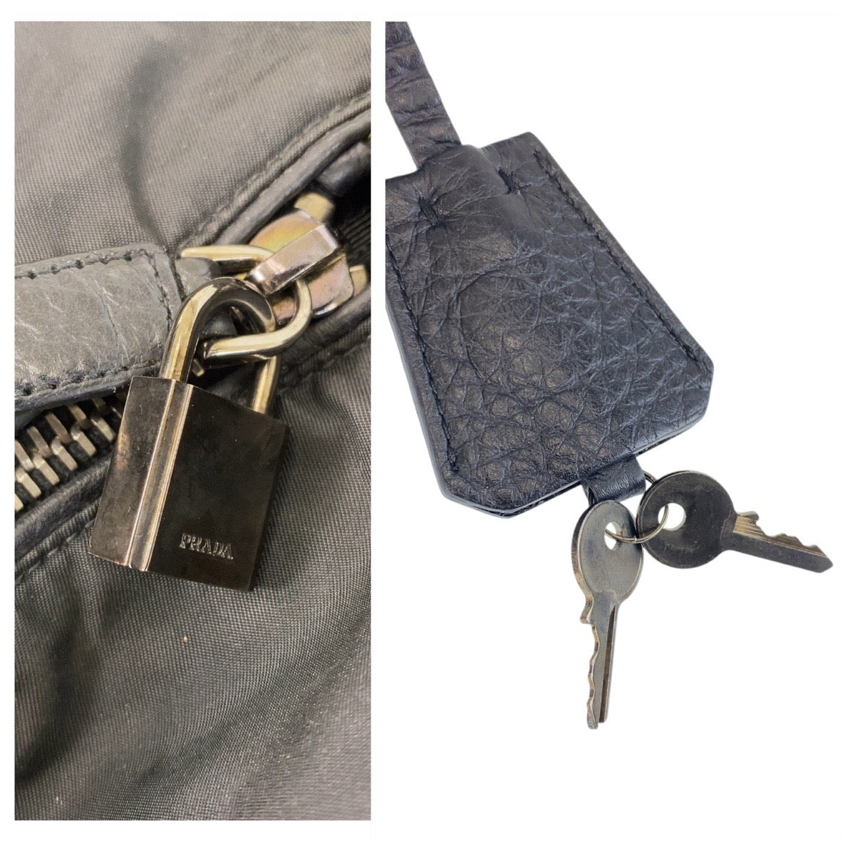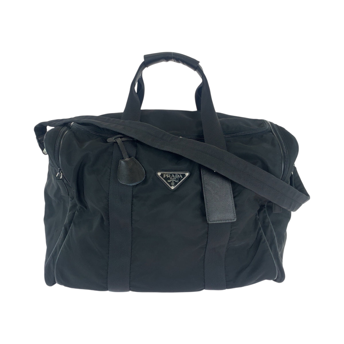 PRADA Boston Duffel bag Nylon, Leather Black SilverMetal Boston Duffel bag, handbag, unisex, 2way Triangle With logo Women Used Authentic