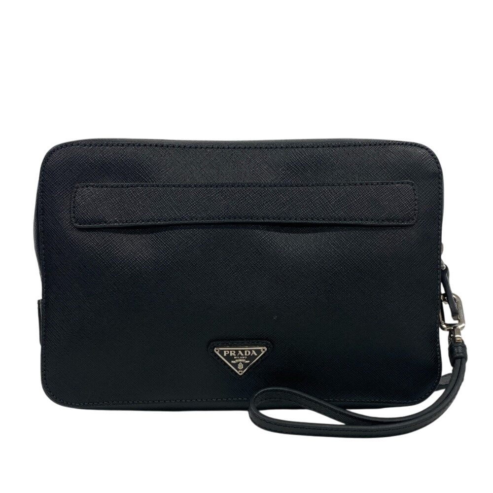 PRADA business bag leather Black GoldMetal business bag clutch bag Safiano logo Women Used Authentic