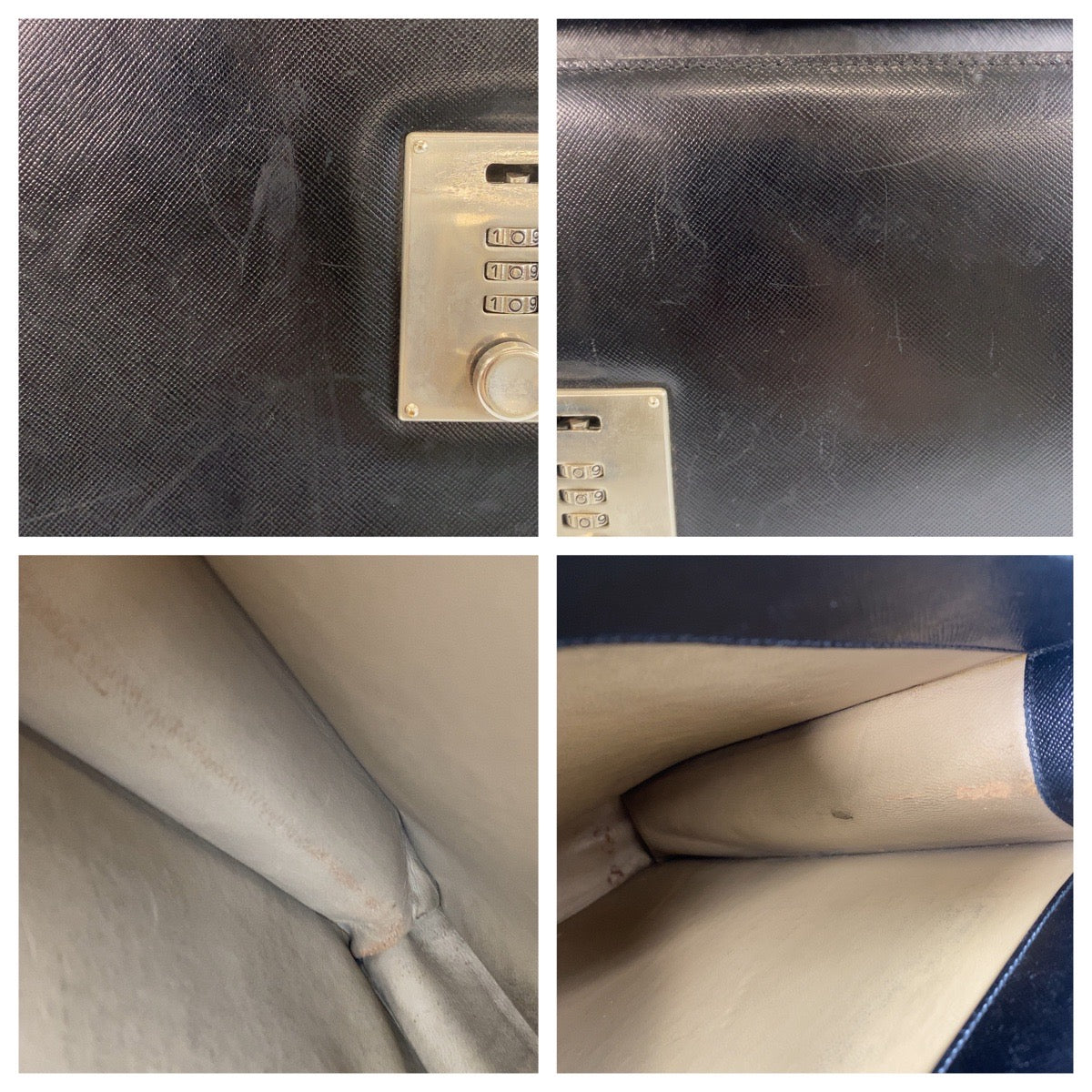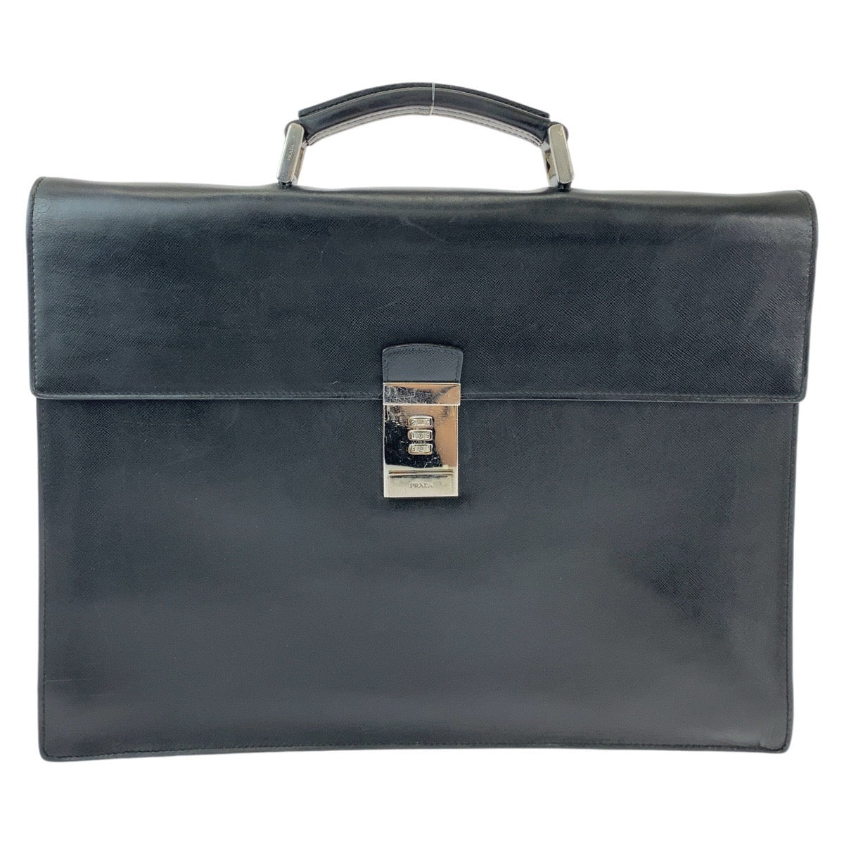 PRADA Business bag leather Black SilverMetal Business bag briefcase Safiano mens Used Authentic