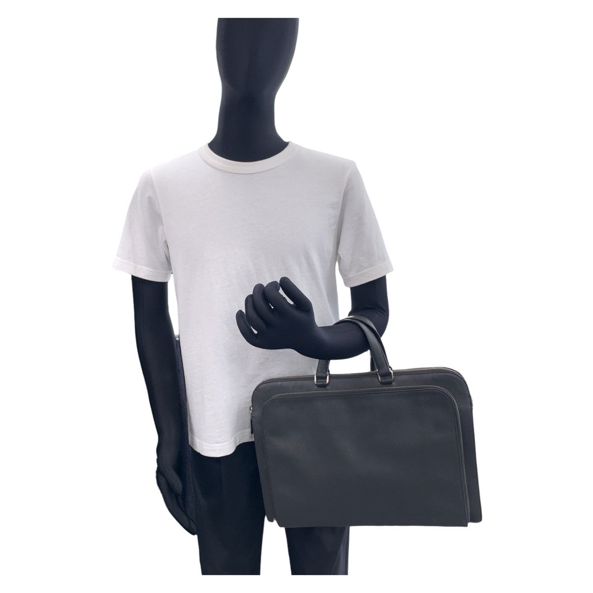 PRADA Business bag leather Dark Grey SilverMetal Business bag briefcase A4 compatible Safiano Triangle With logo mens Used Authentic