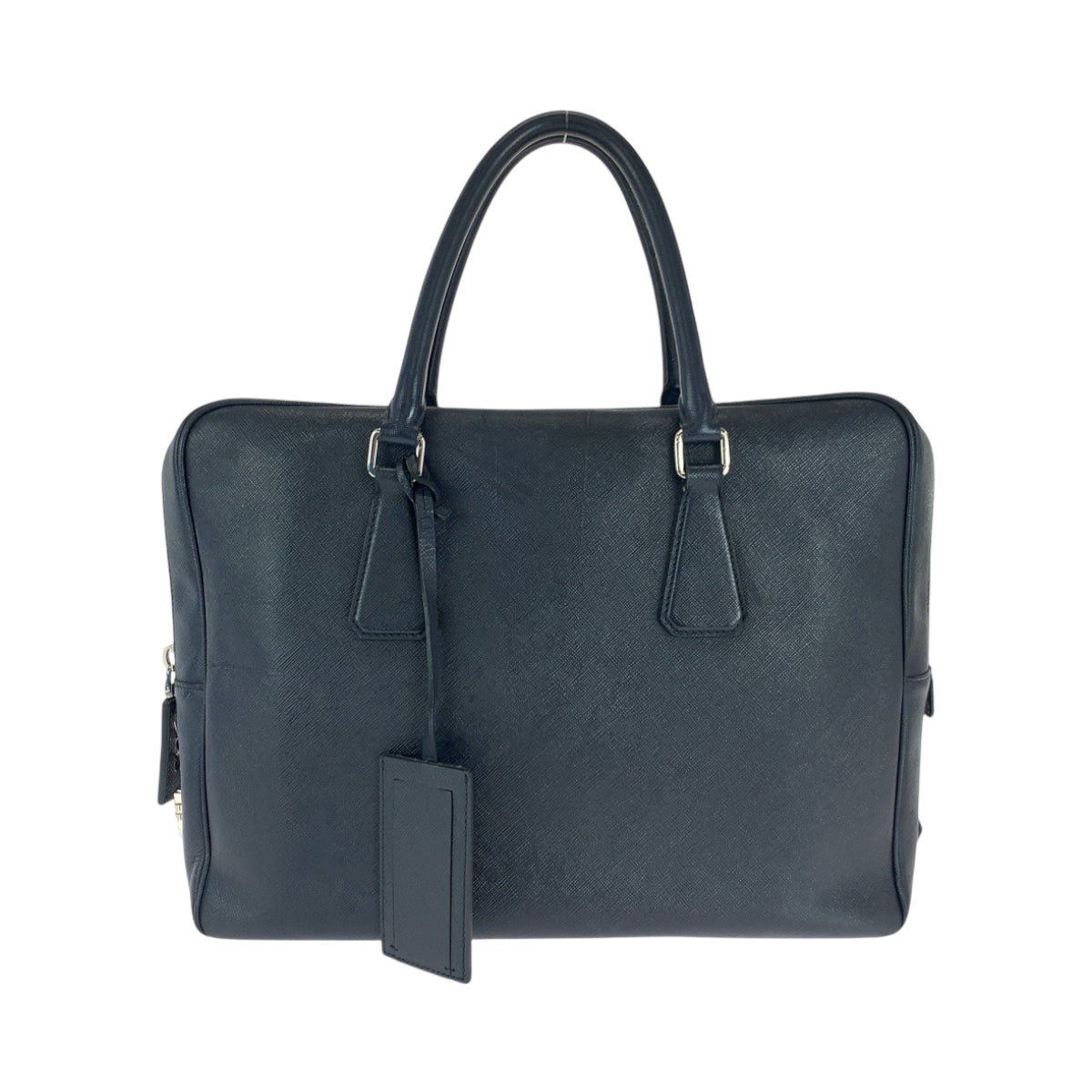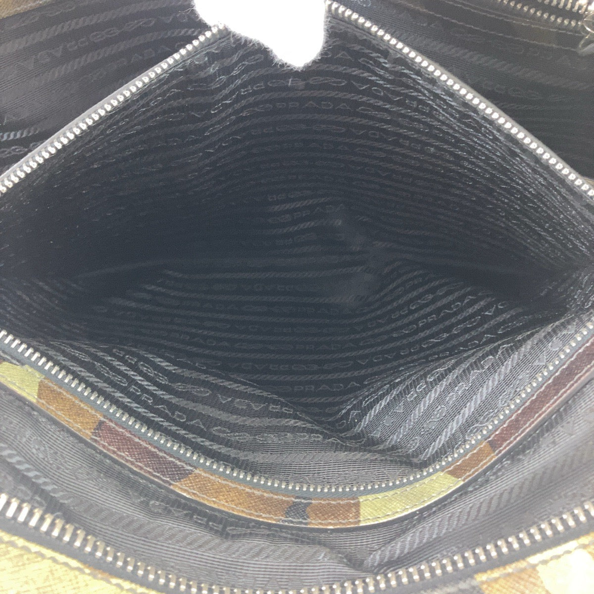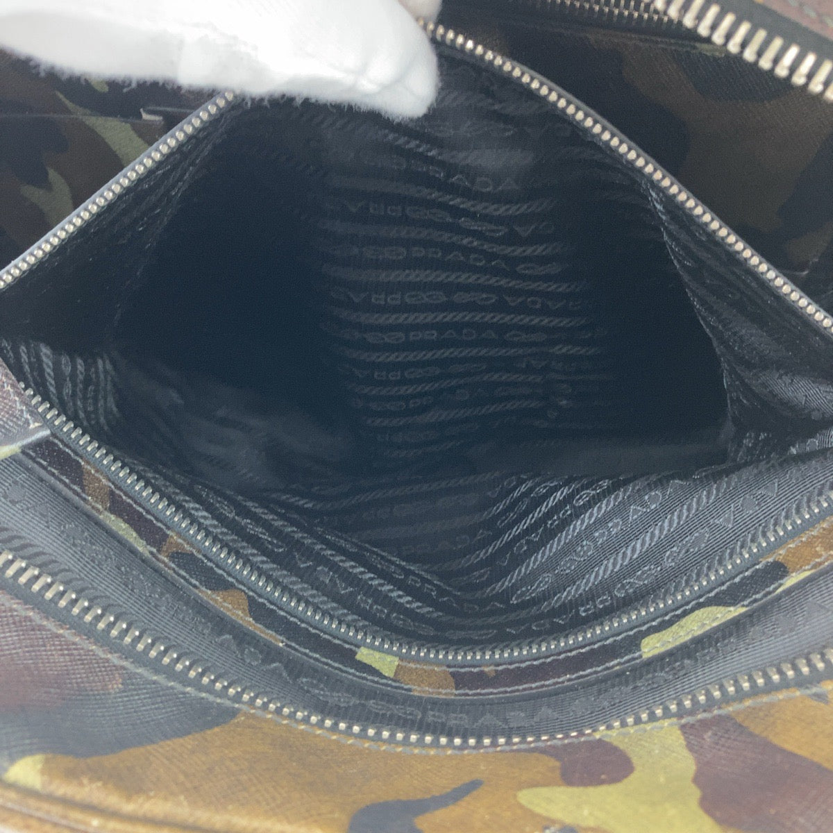 PRADA Business bag leather Green SilverMetal Business bag, briefcase, A4 storage Saffiano Camouflage mens Used Authentic
