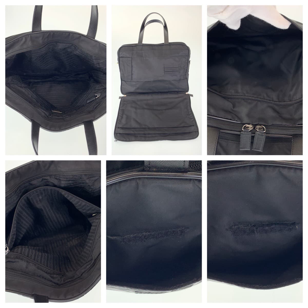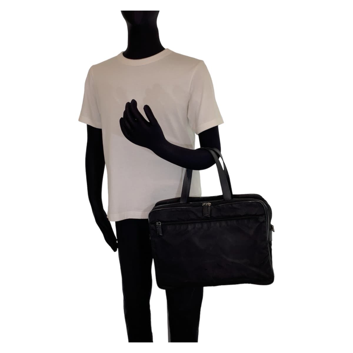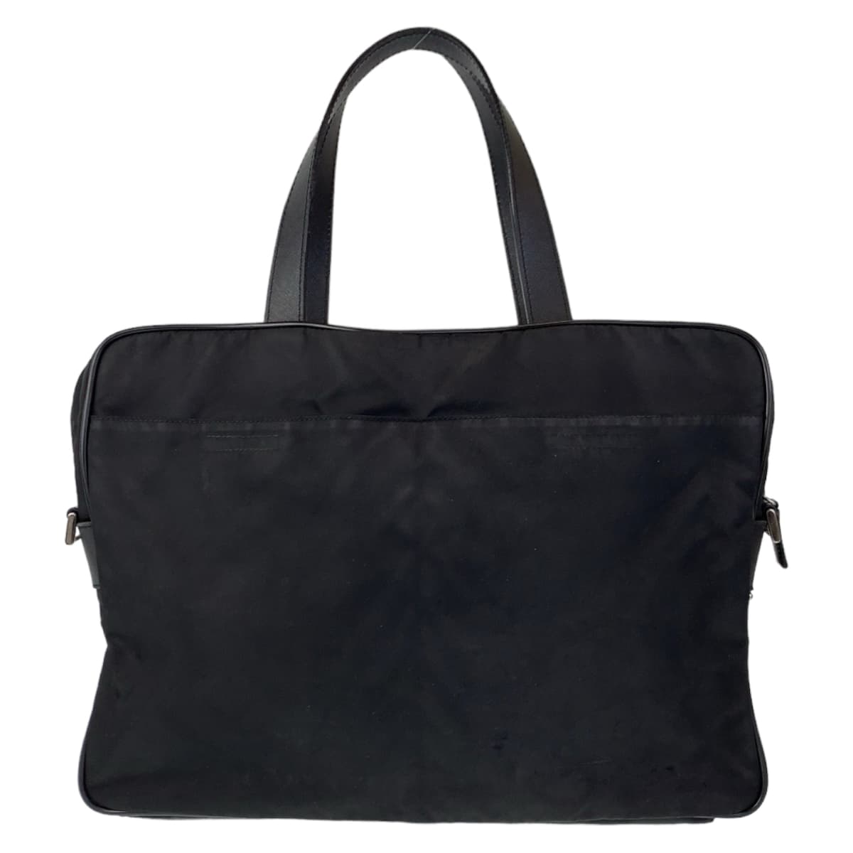 PRADA Business bag Nylon, Leather Black Silver Metal Business bag briefcase Test Triangular logo mens Used Authentic