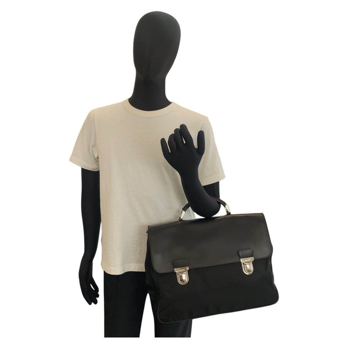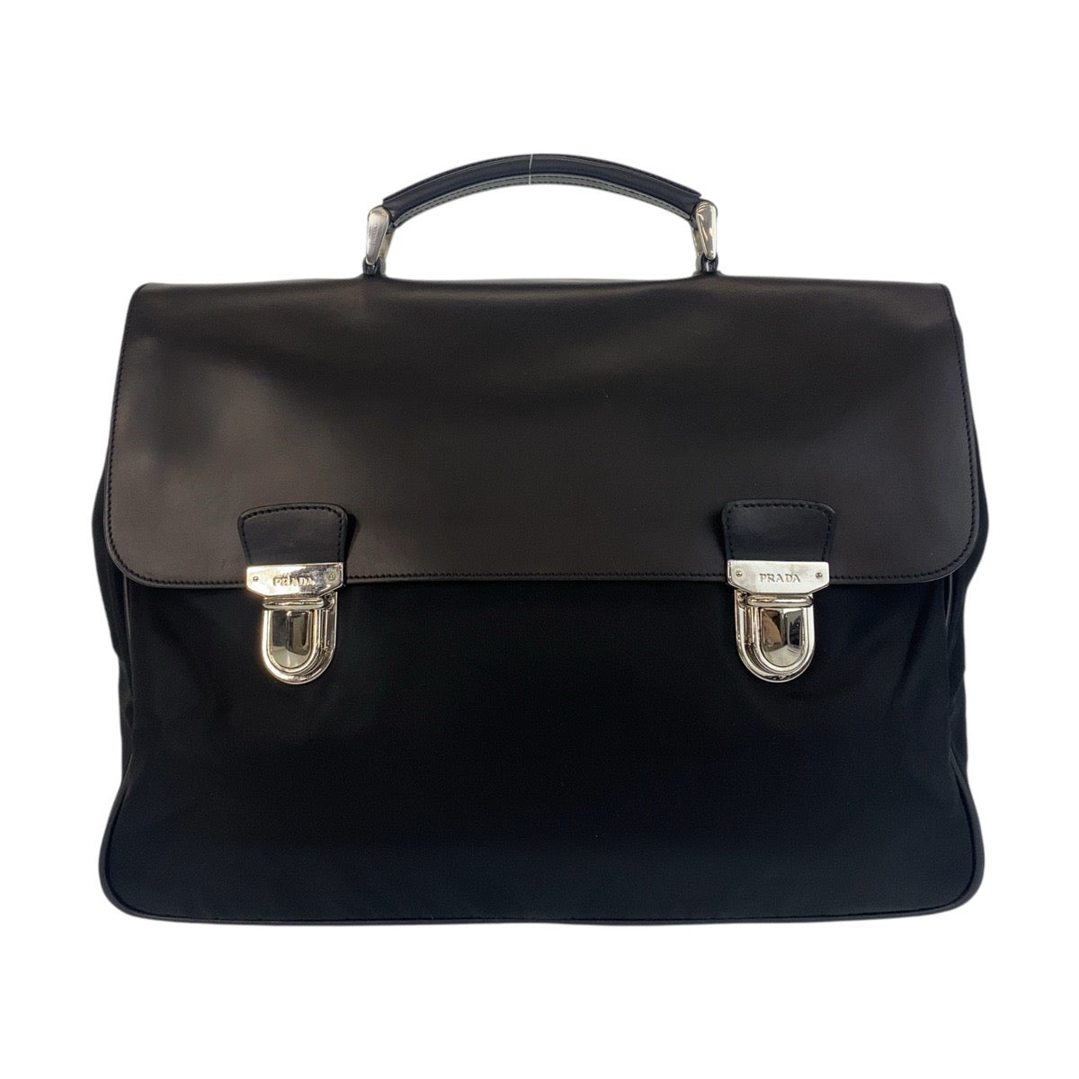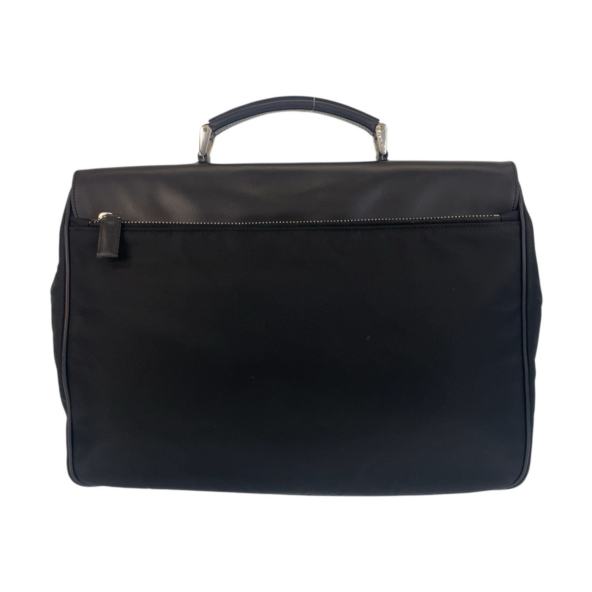 PRADA Business bag Nylon, Leather Black SilverMetal Business bag briefcase Test mens Used Authentic