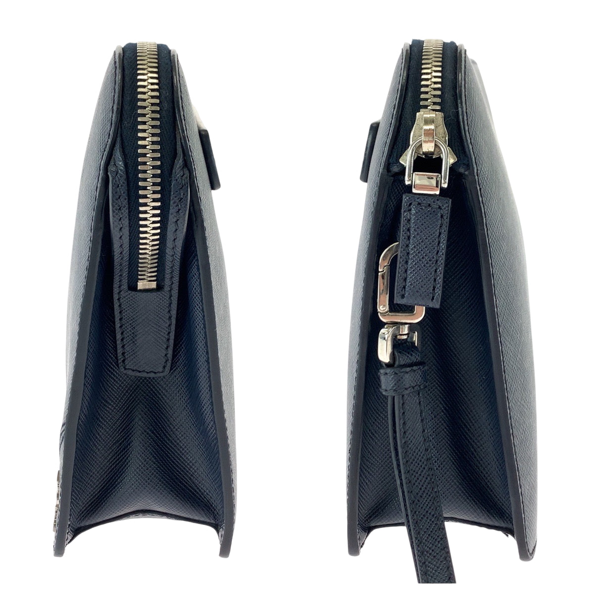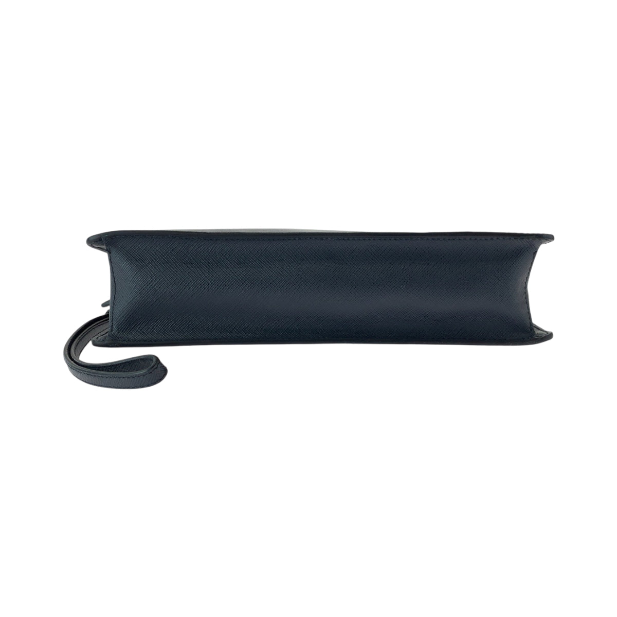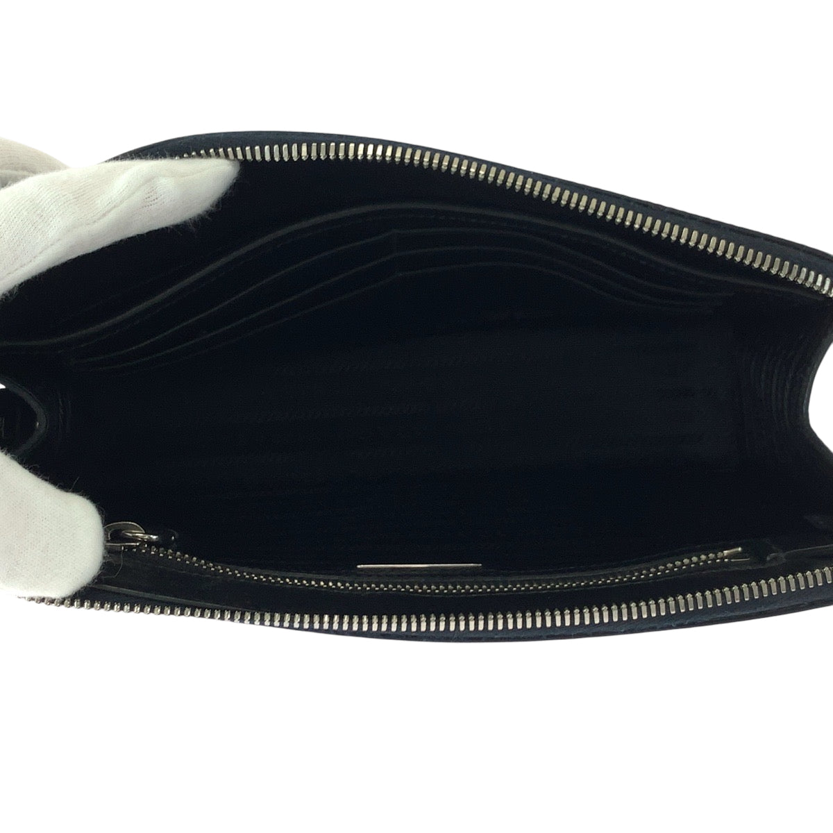 PRADA Clutch bag 2VF056 leather Navy SilverMetal Clutch bag business bag Safiano logo mens Used Authentic