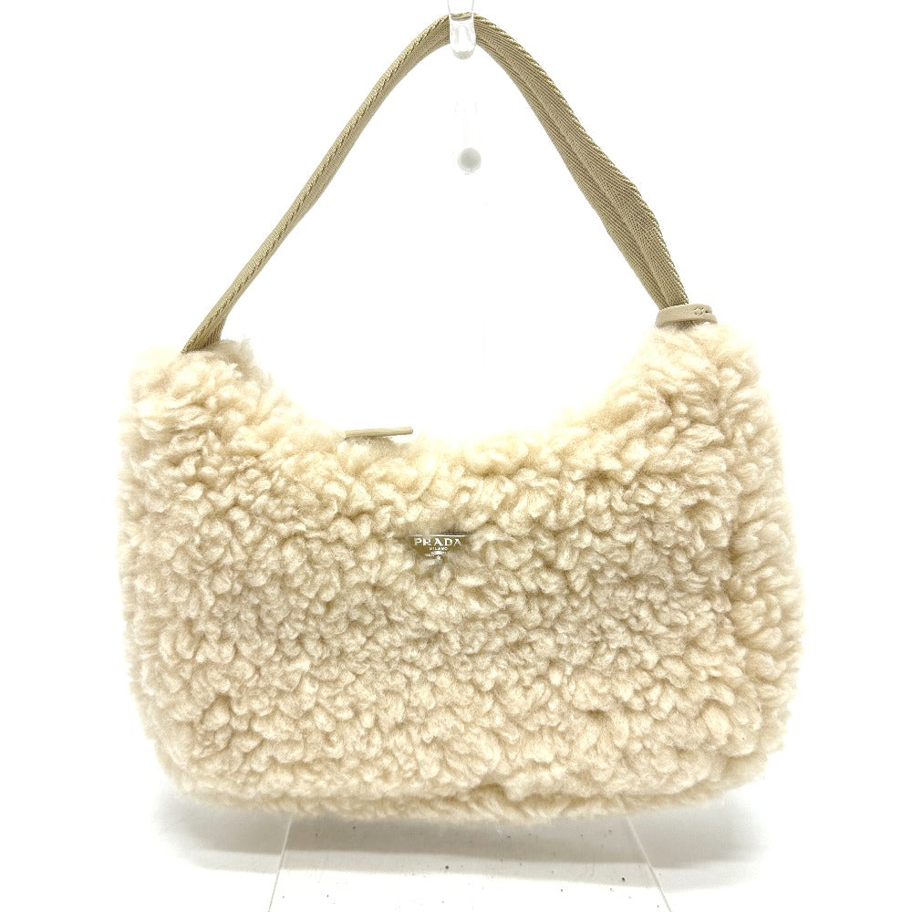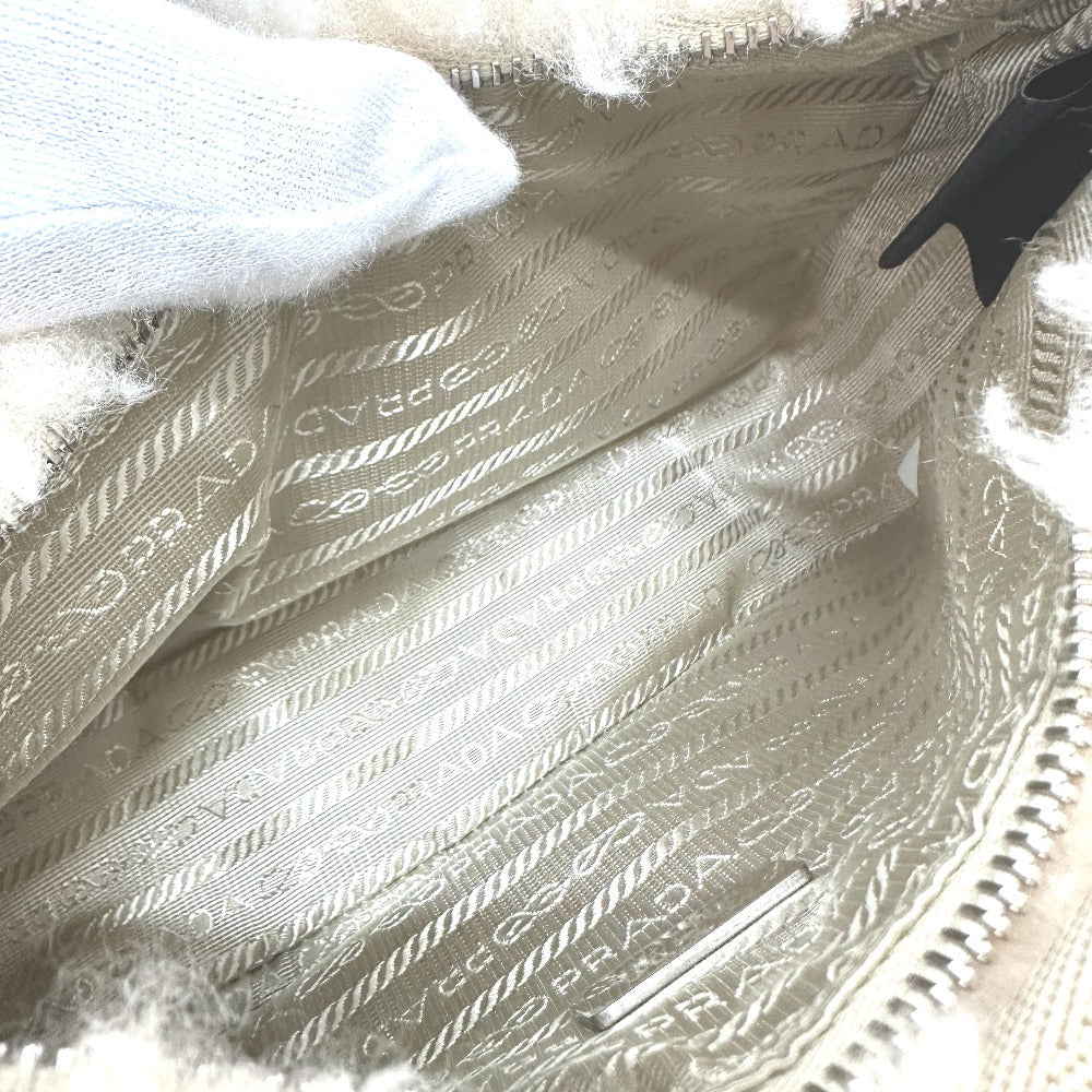 PRADA Handbag 1NE515 Sheep fur beige Triangle logo Women Secondhand Authentic