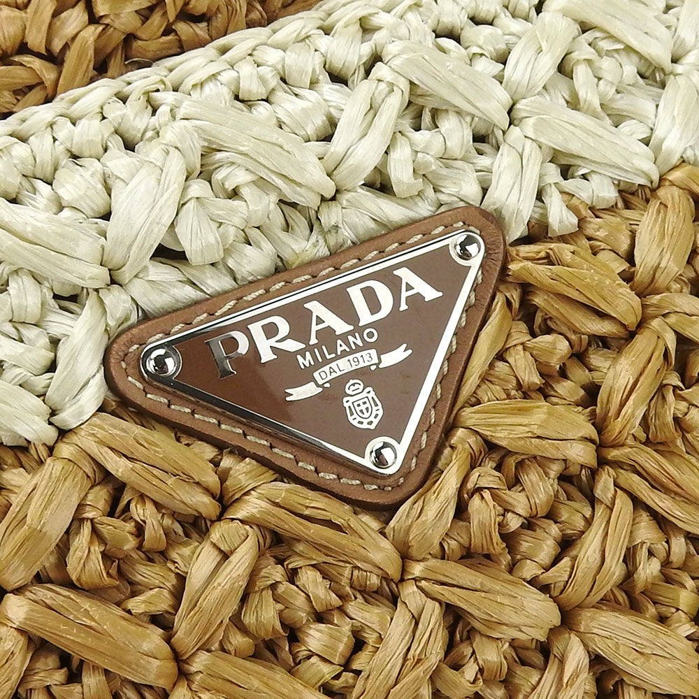 PRADA Handbag BN2889 Raffia Brown Canapa Women Used Authentic