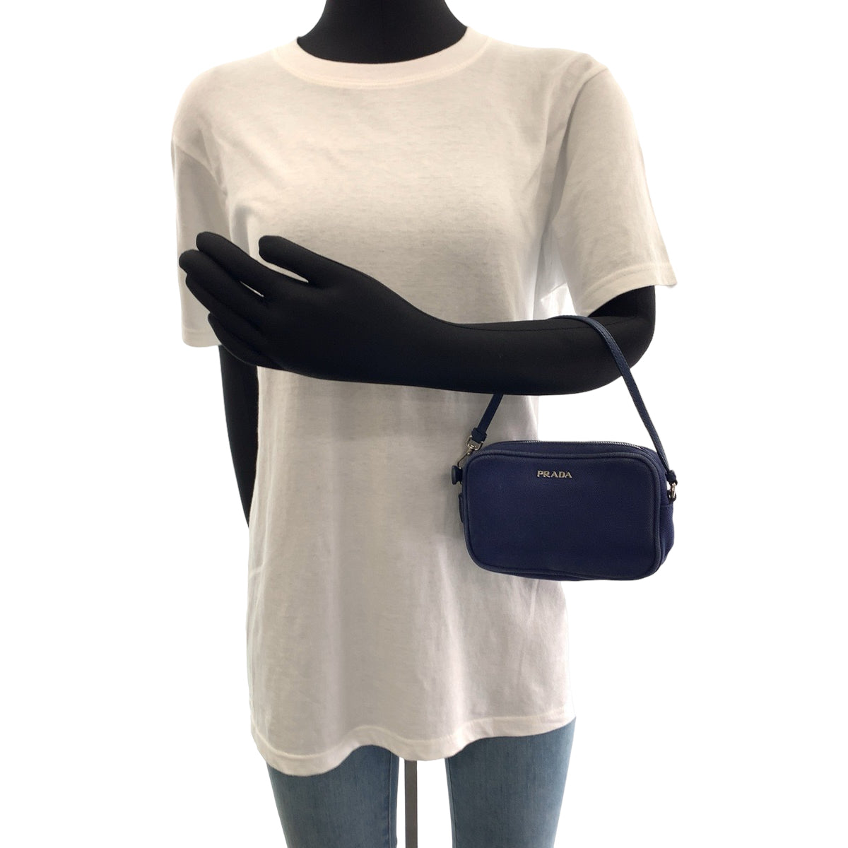 PRADA Handbag canvas Blue Silver Metal mini handbag accessory pouch Women Used Authentic