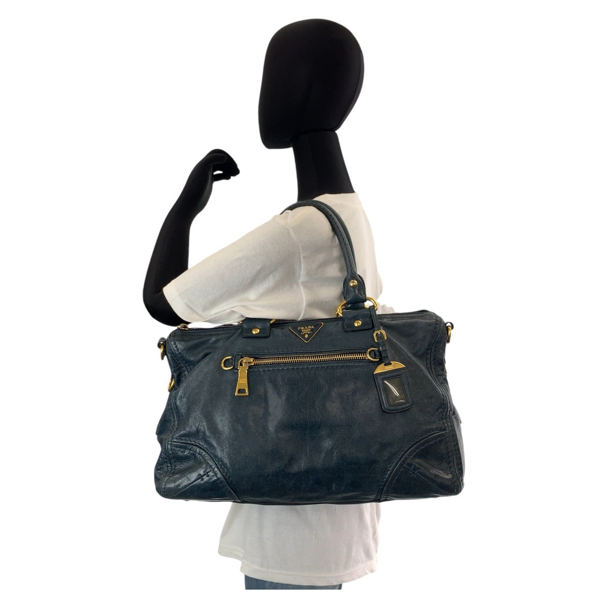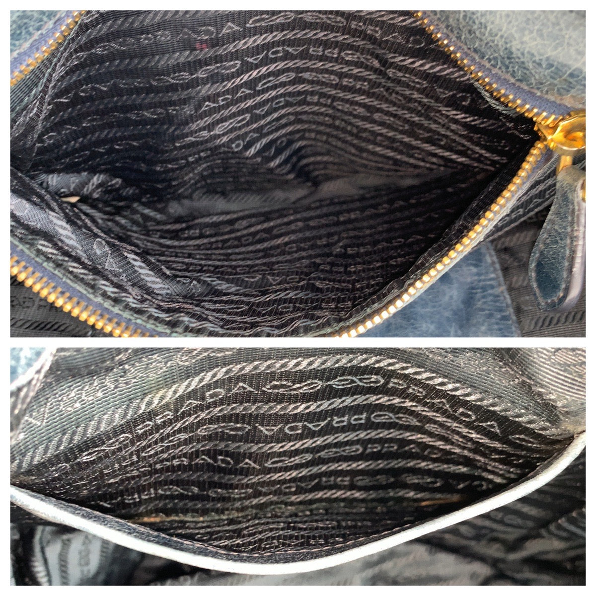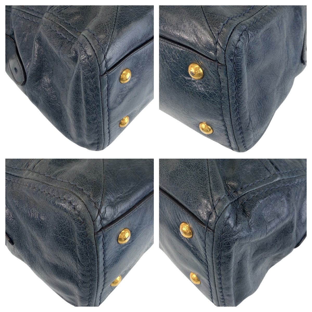 PRADA Handbag leather blue Handbag Tote Bag Shoulder Bag Triangle With logo Women Used Authentic