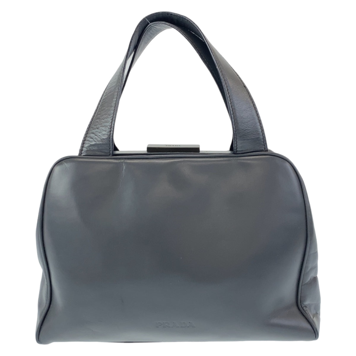 PRADA Handbag leather blue Witte Loglein Triangle With logo