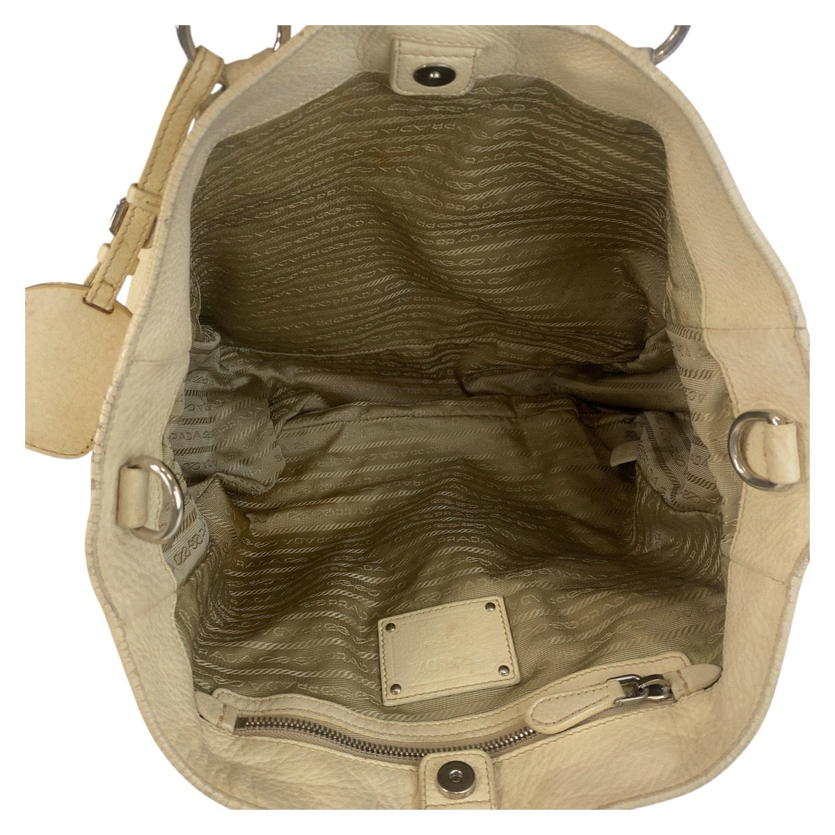 PRADA Handbag leather Ivory Cream SilverMetal Handbag Shoulder Bag 2way Women Used Authentic
