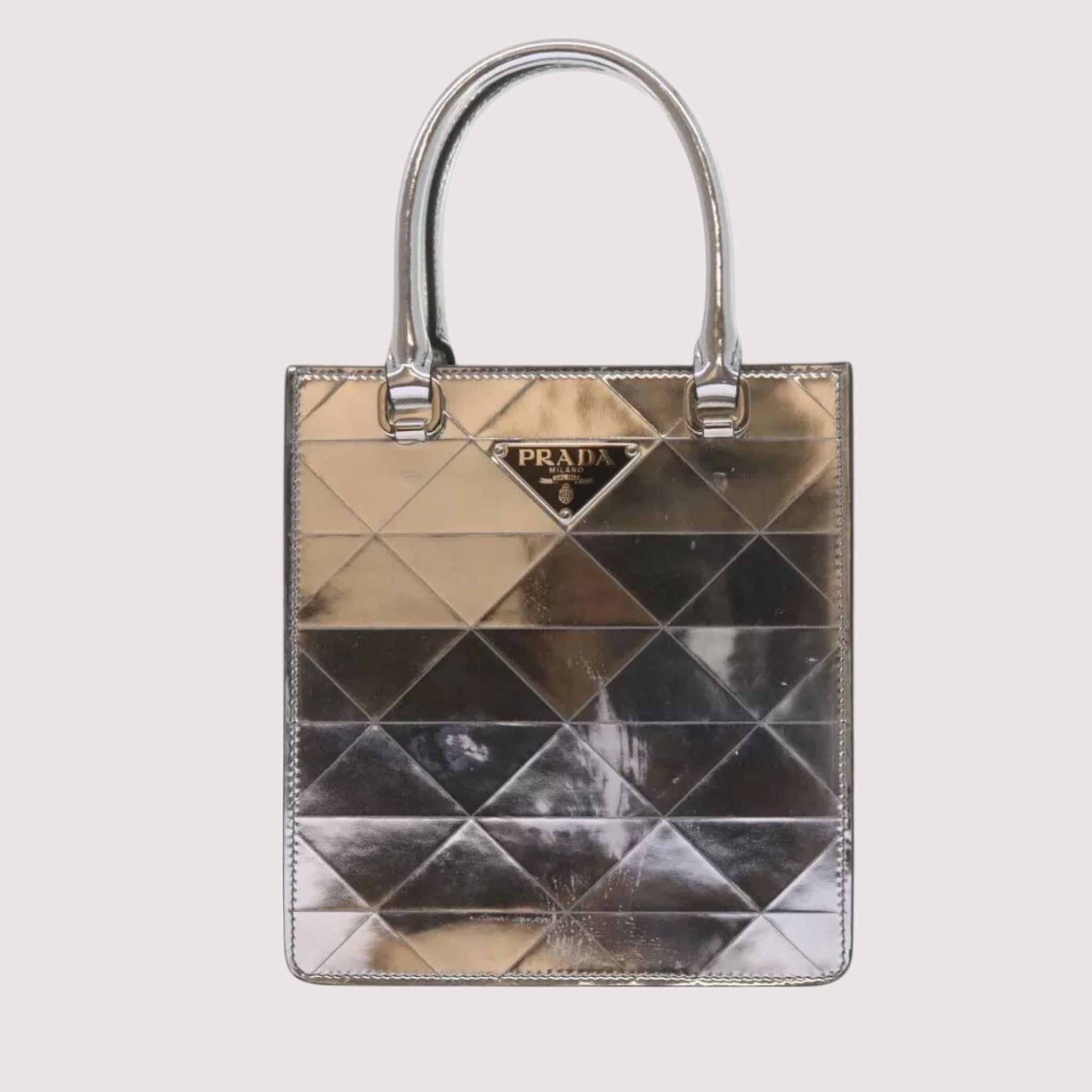 PRADA Handbag leather Yellow Gold Metal Handbag Tote Bag Shoulder Bag 2way Safiano TriangleWith logo Galleria Women Used Authentic