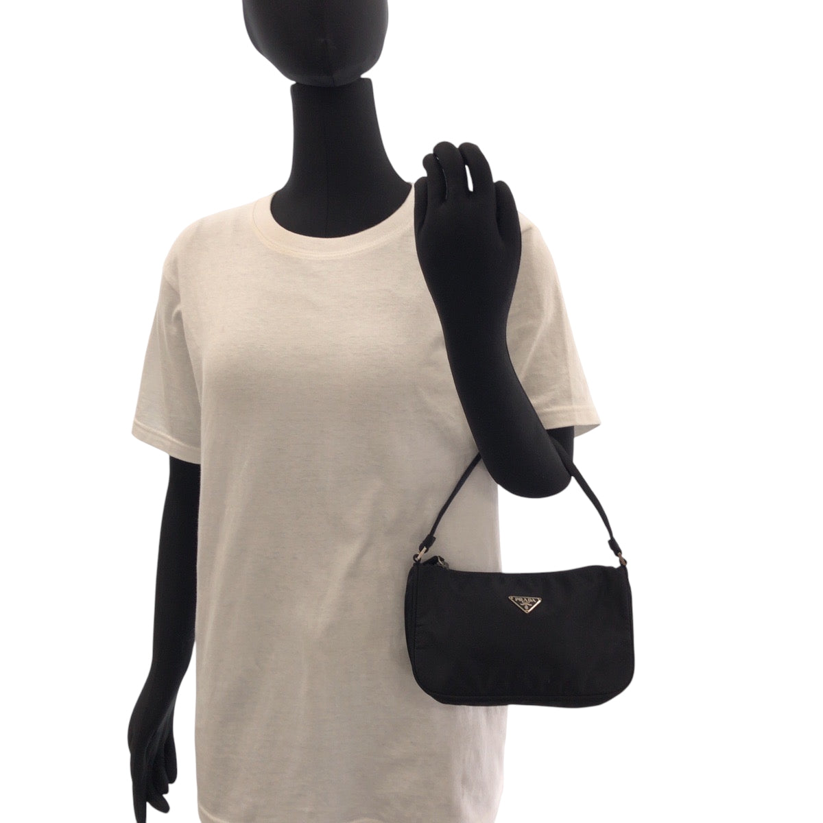 PRADA Handbag Nylon Black SilverMetal Handbag accessory pouch Test Triangle With logo Women Used Authentic