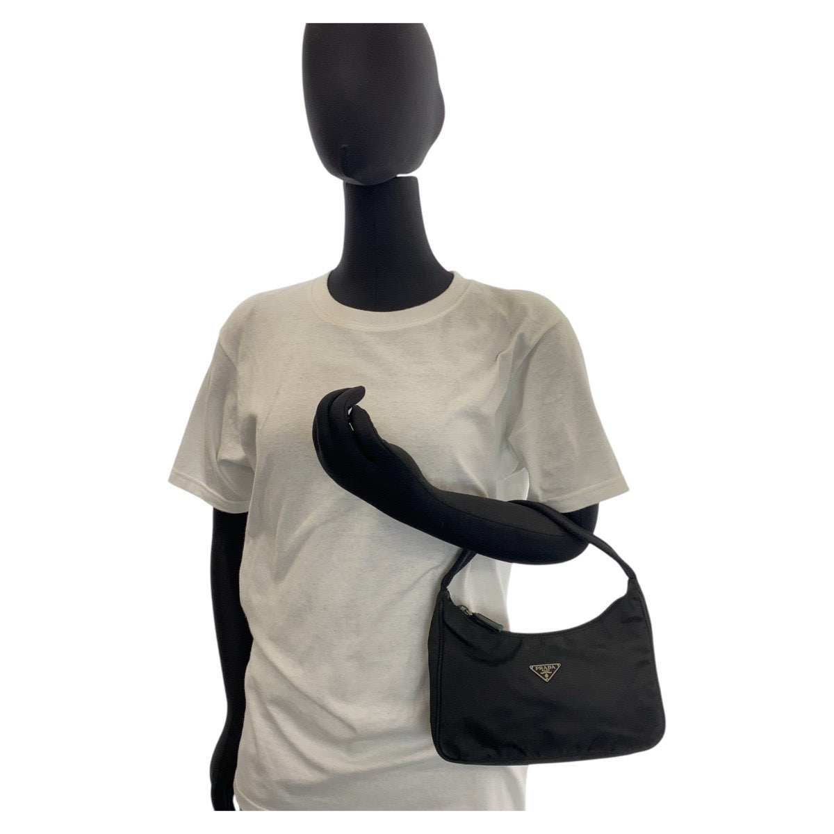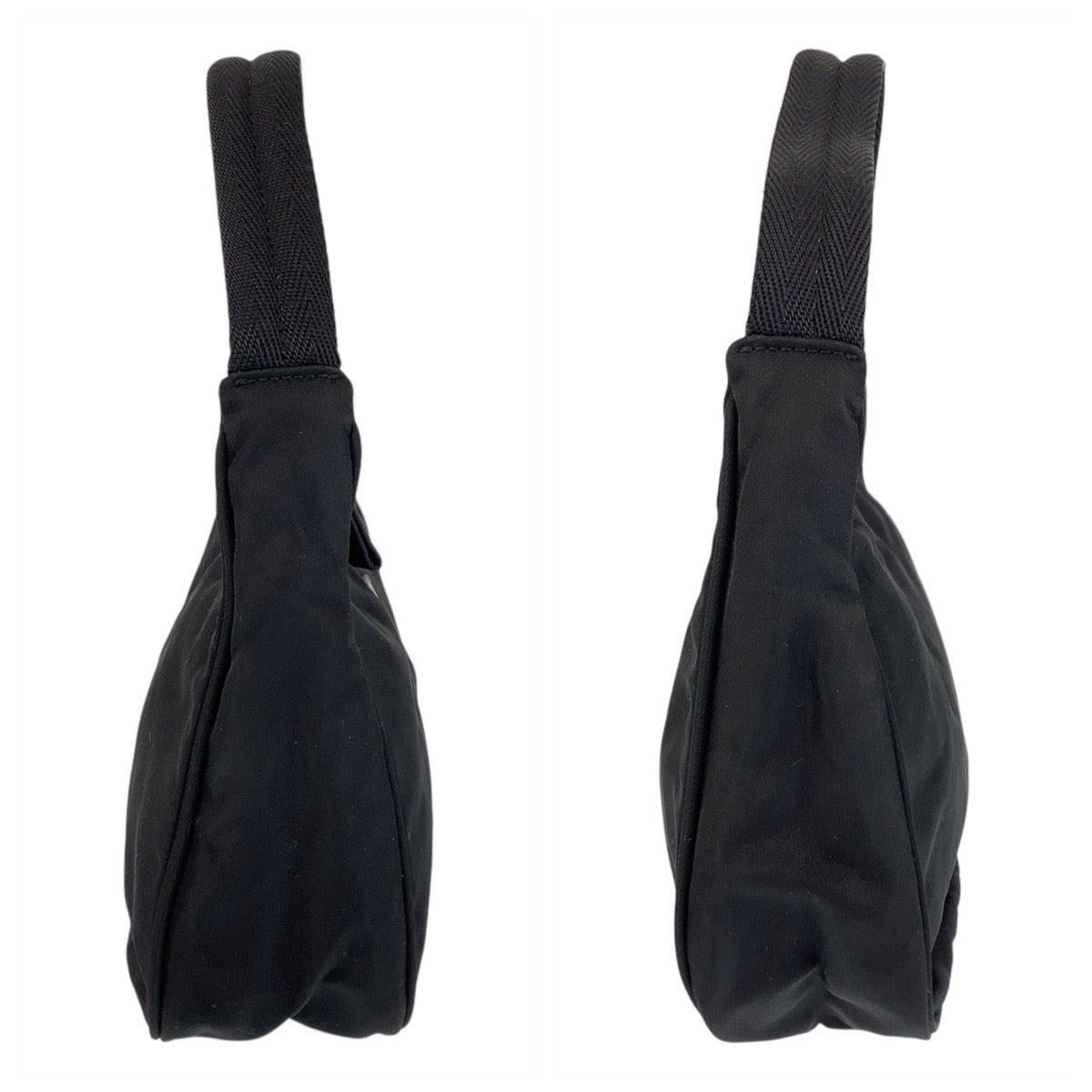 PRADA Handbag Nylon Black SilverMetal Handbag Test Triangle With logo Women Used Authentic