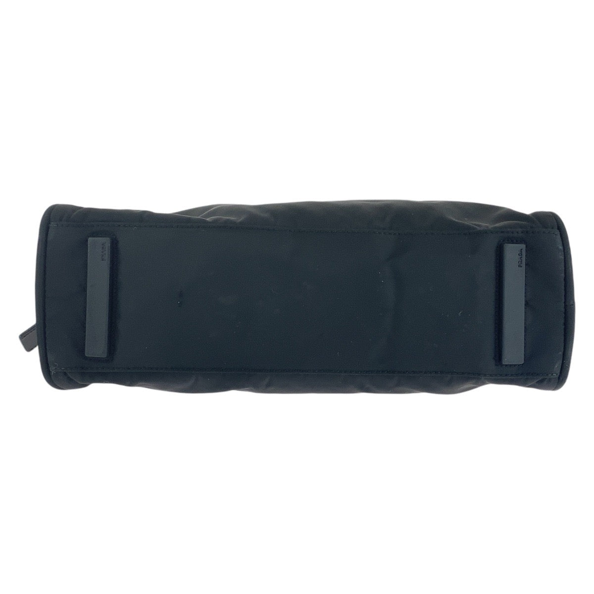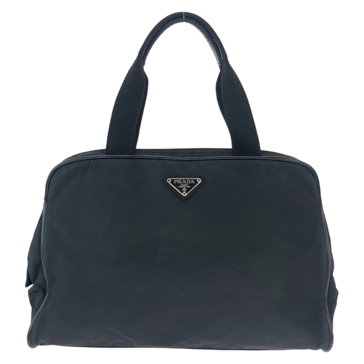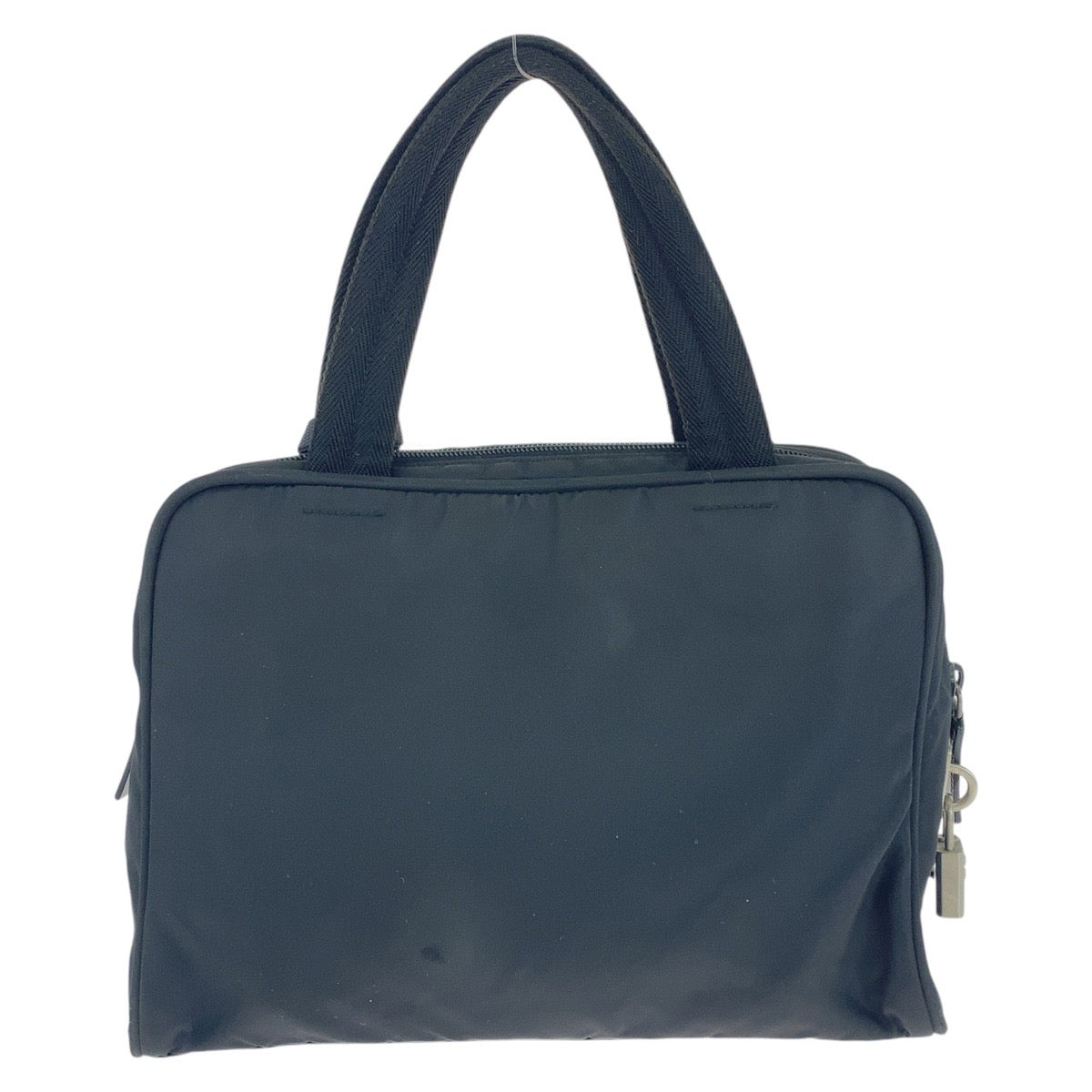 PRADA Handbag Nylon Black SilverMetal Handbag Test Triangle With logo Women Used Authentic