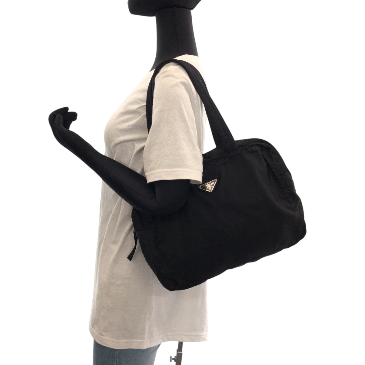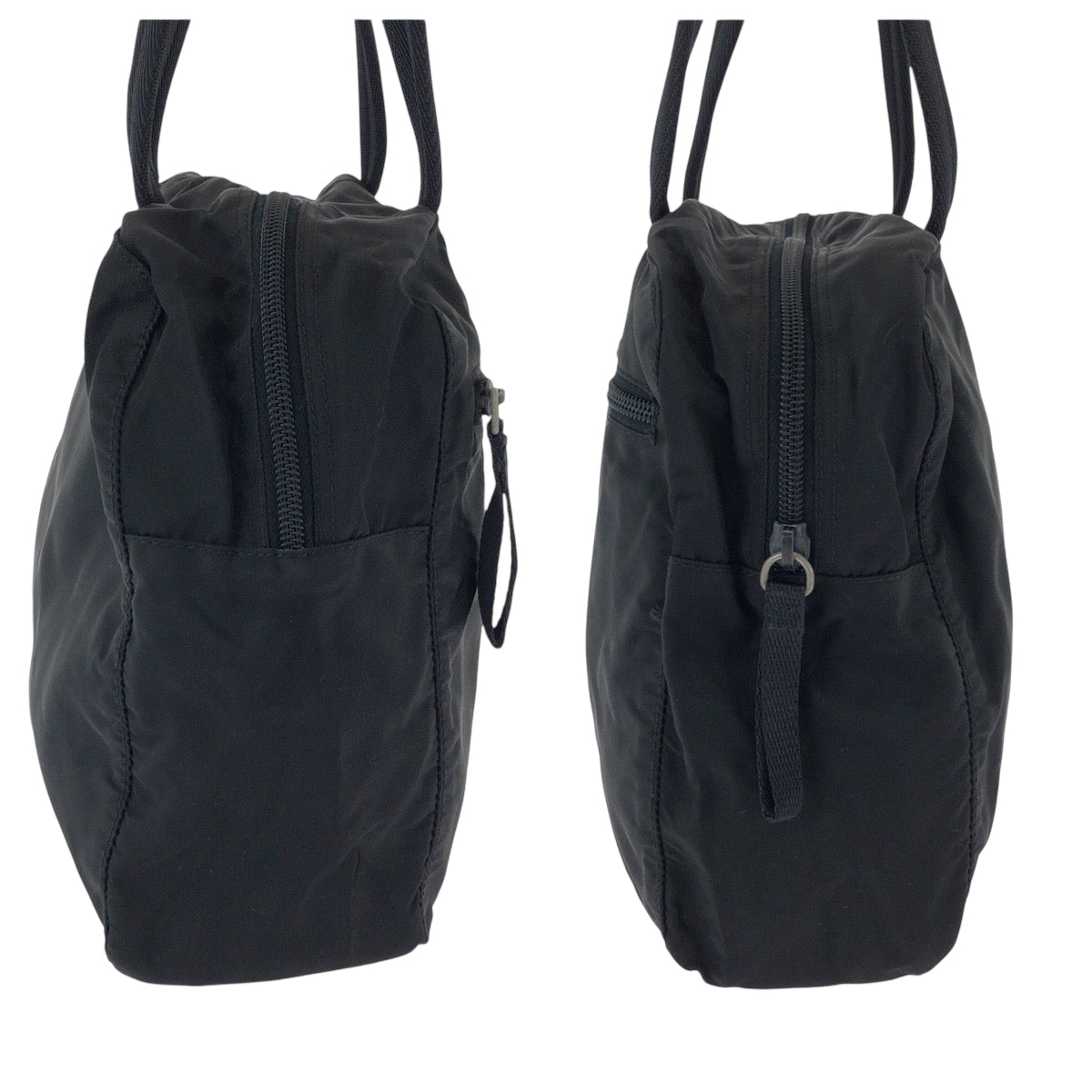 PRADA Handbag Nylon Black SilverMetal Handbag Tote Bag Test Triangle With logo Women Used Authentic