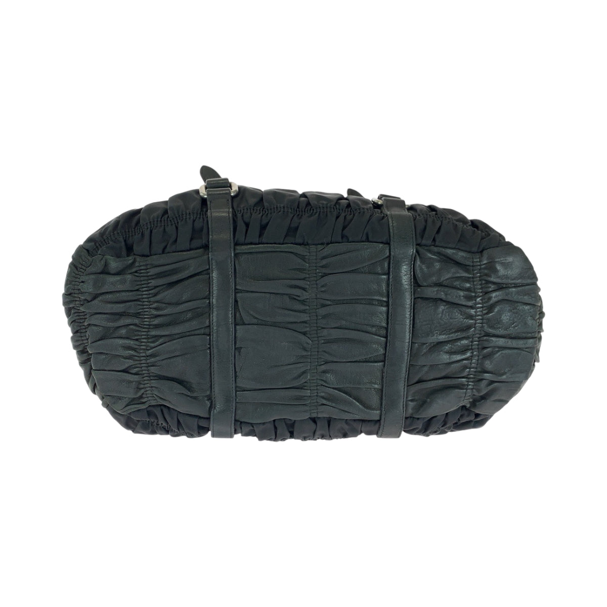 PRADA Handbag Nylon Black SilverMetal Handbag Shoulder Bag Test Triangle With logo Women Used Authentic