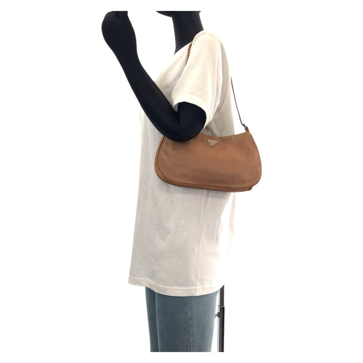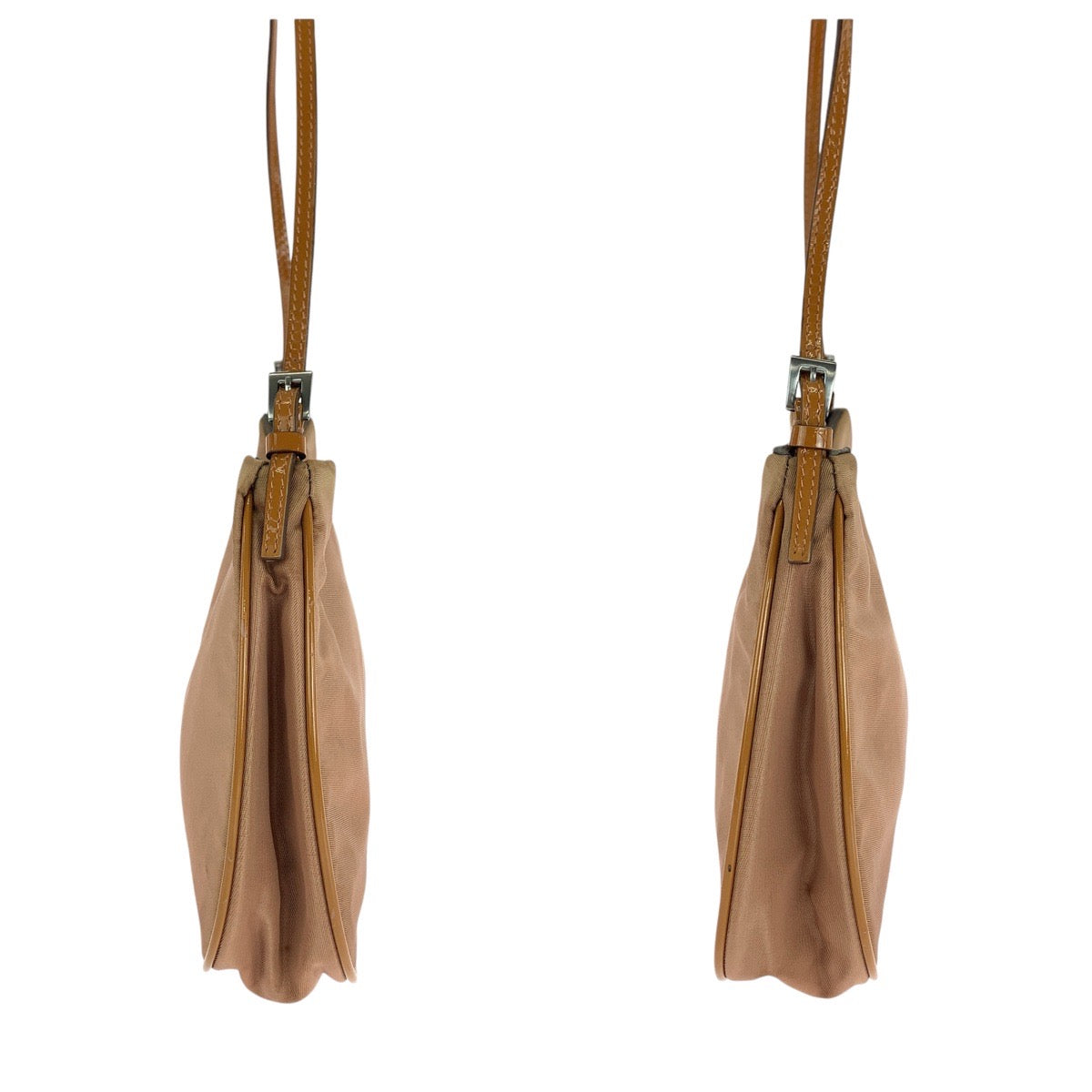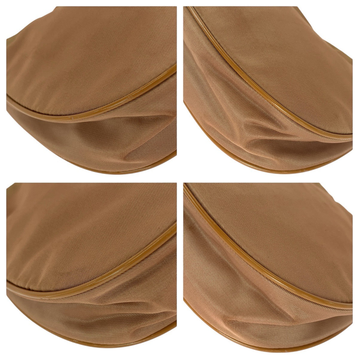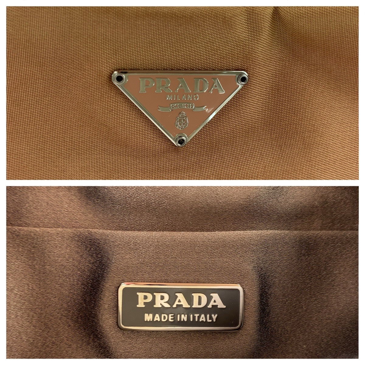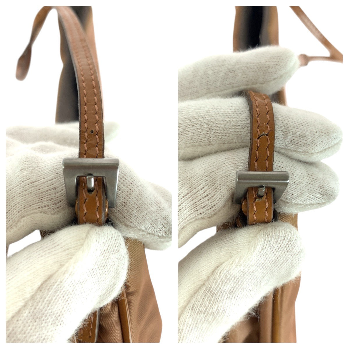 PRADA Handbag Nylon, enamel Brown Beige SilverMetal Handbag accessory pouch Test Triangle With logo Women Used Authentic