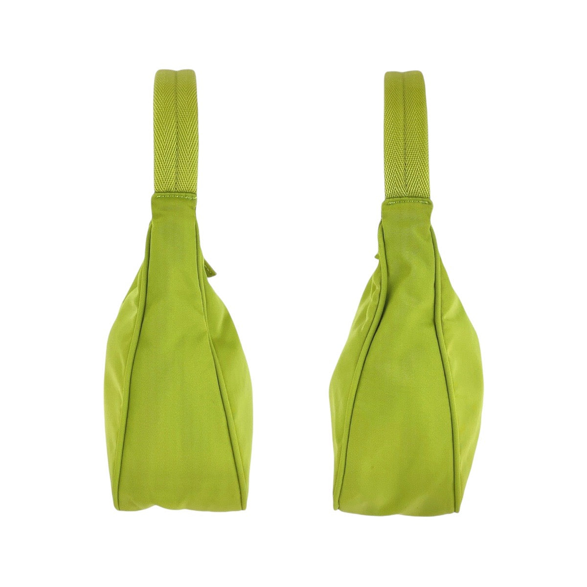 PRADA Handbag Nylon Green GoldMetal Hobo Accessory Pouch Handbag Test Triangular plate Women Used Authentic