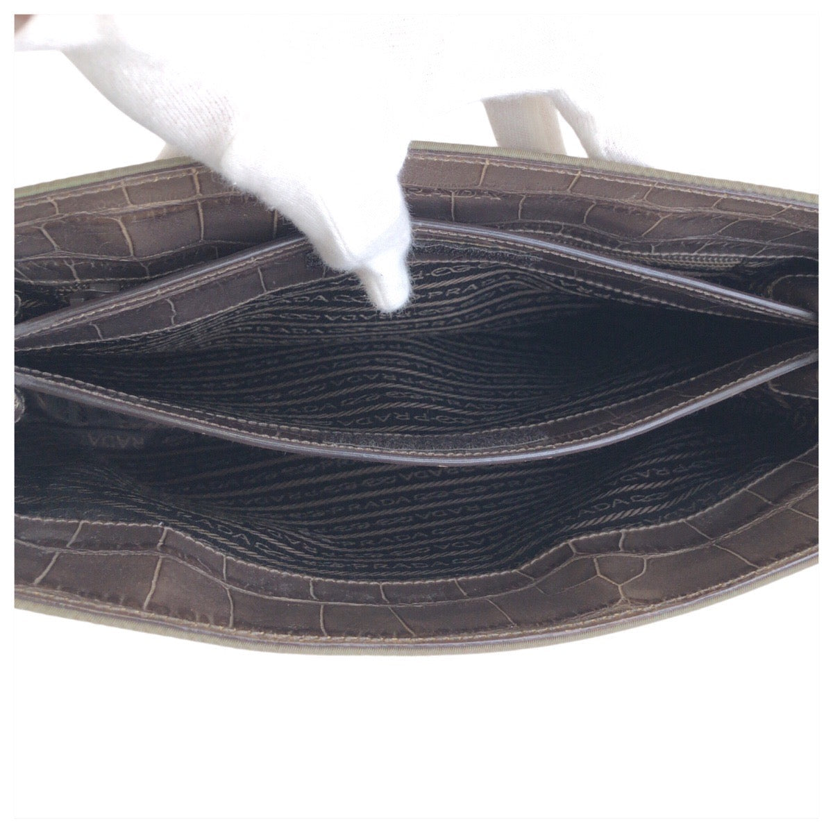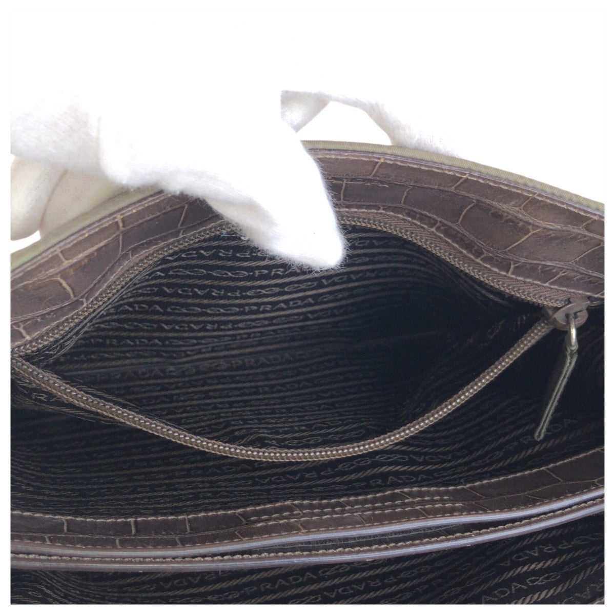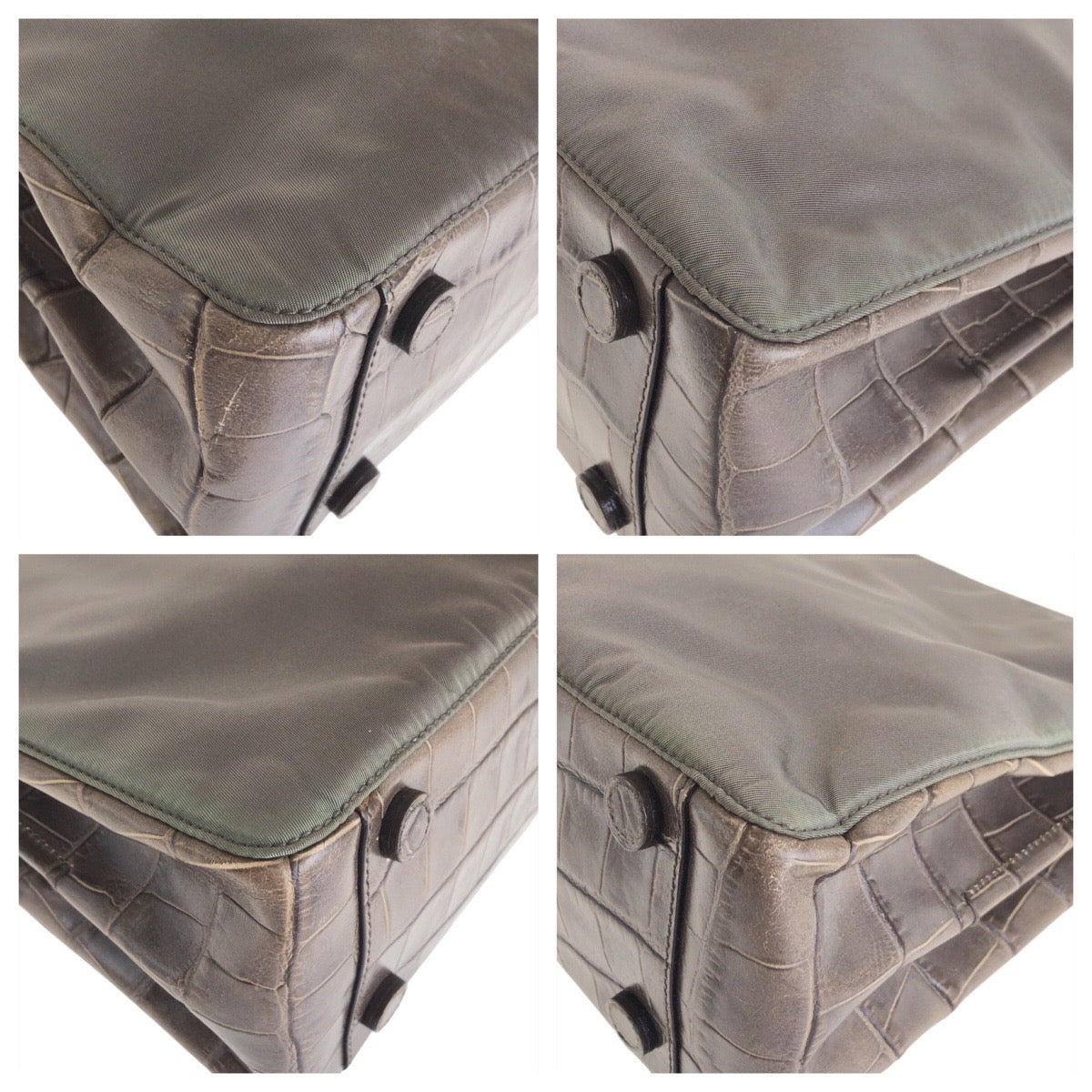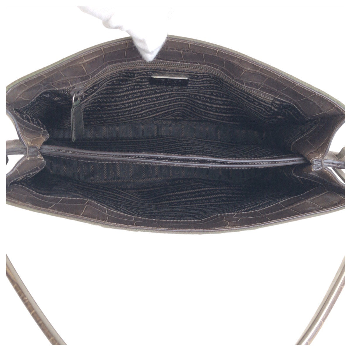 PRADA Handbag Nylon Grey SilverMetal Handbag Shoulder Bag Test Croco embossed Women Used Authentic