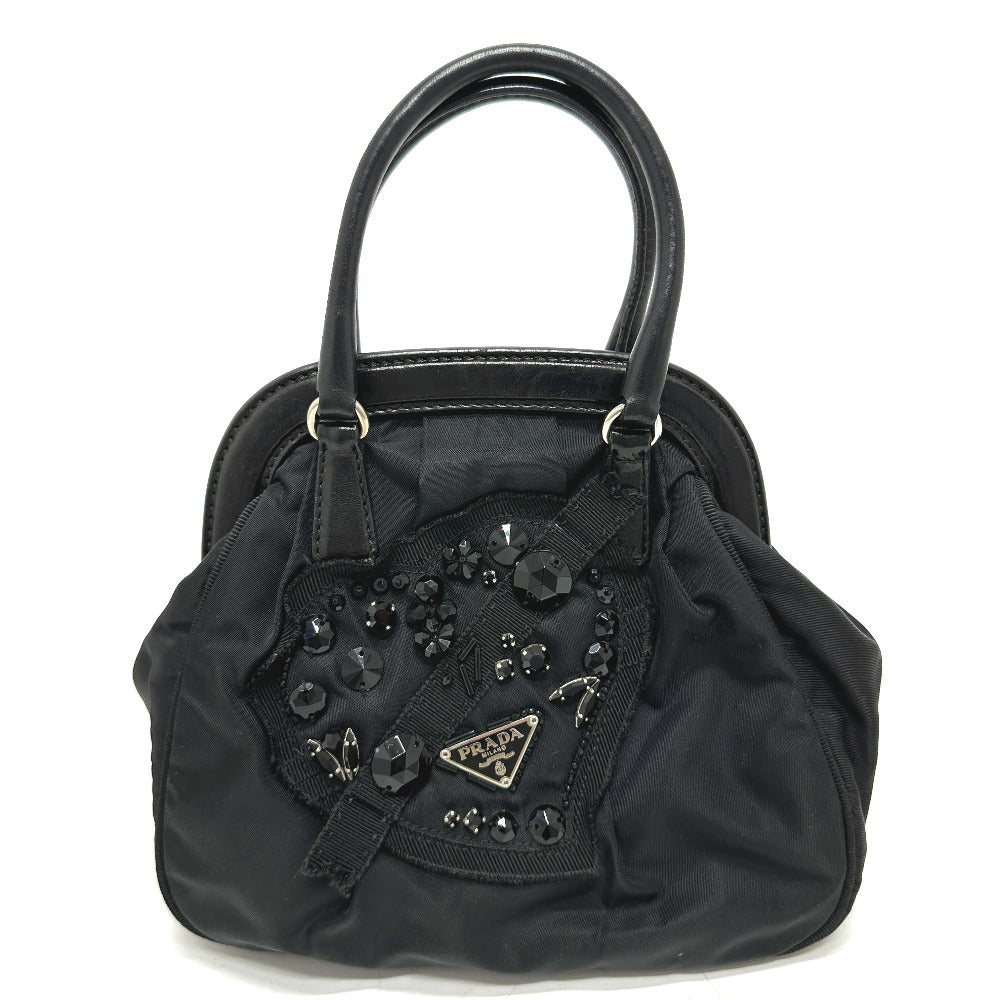 PRADA Handbag Nylon / leather black Evening bear Women Used Authentic