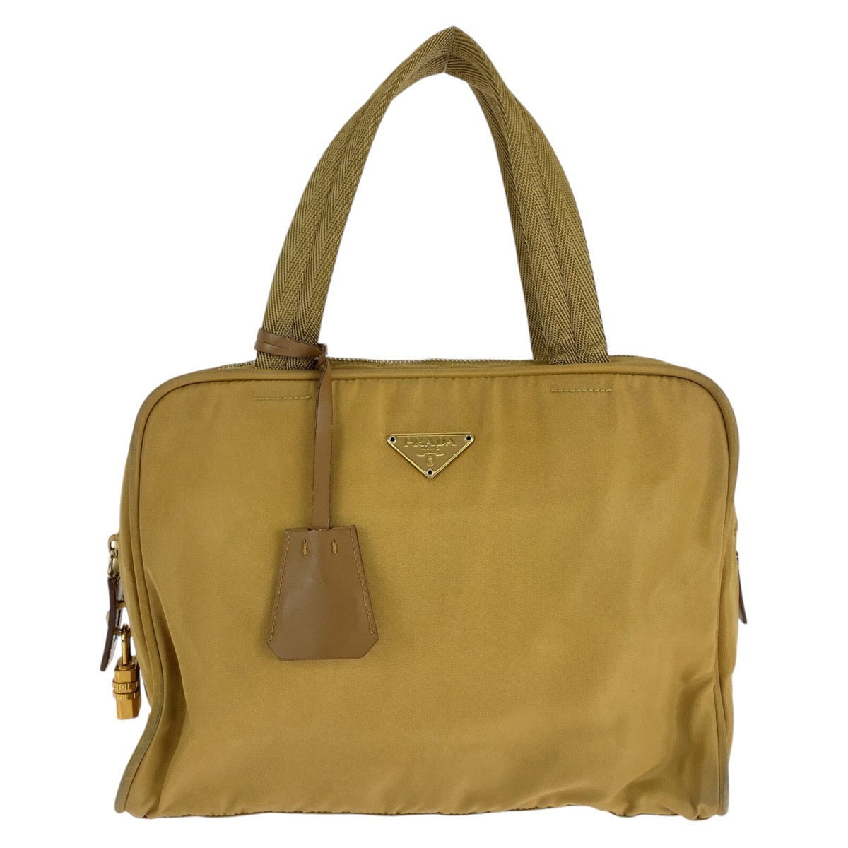 PRADA Handbag Nylon Yellow Gold Metal Handbag Test Triangle With logo Women Used Authentic