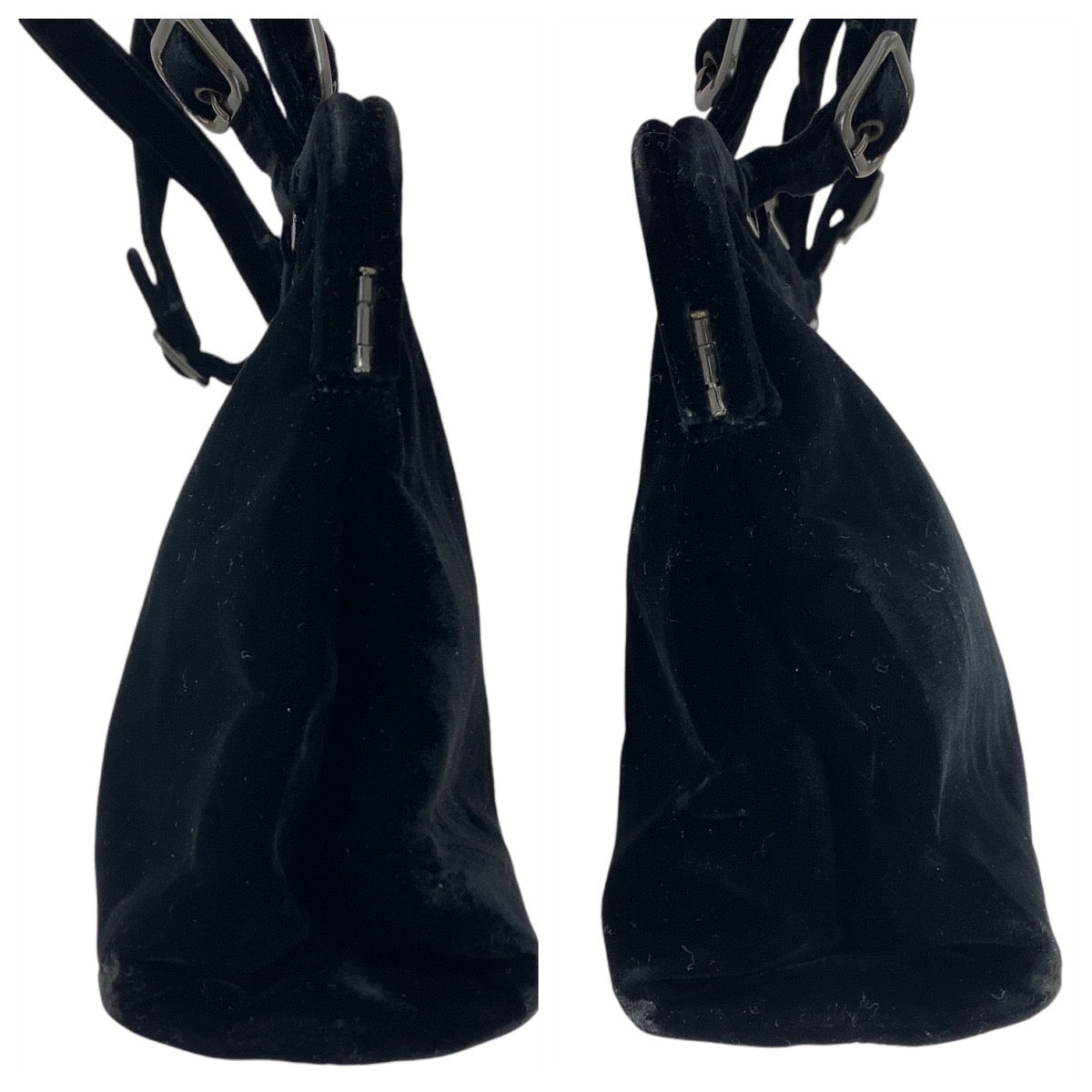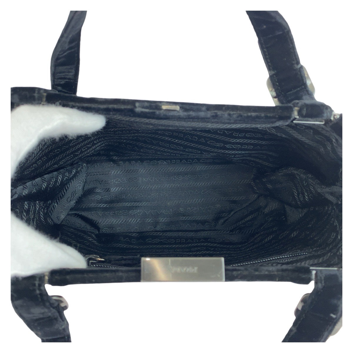 PRADA Handbag Velor Black SilverMetal Handbag Women Used Authentic
