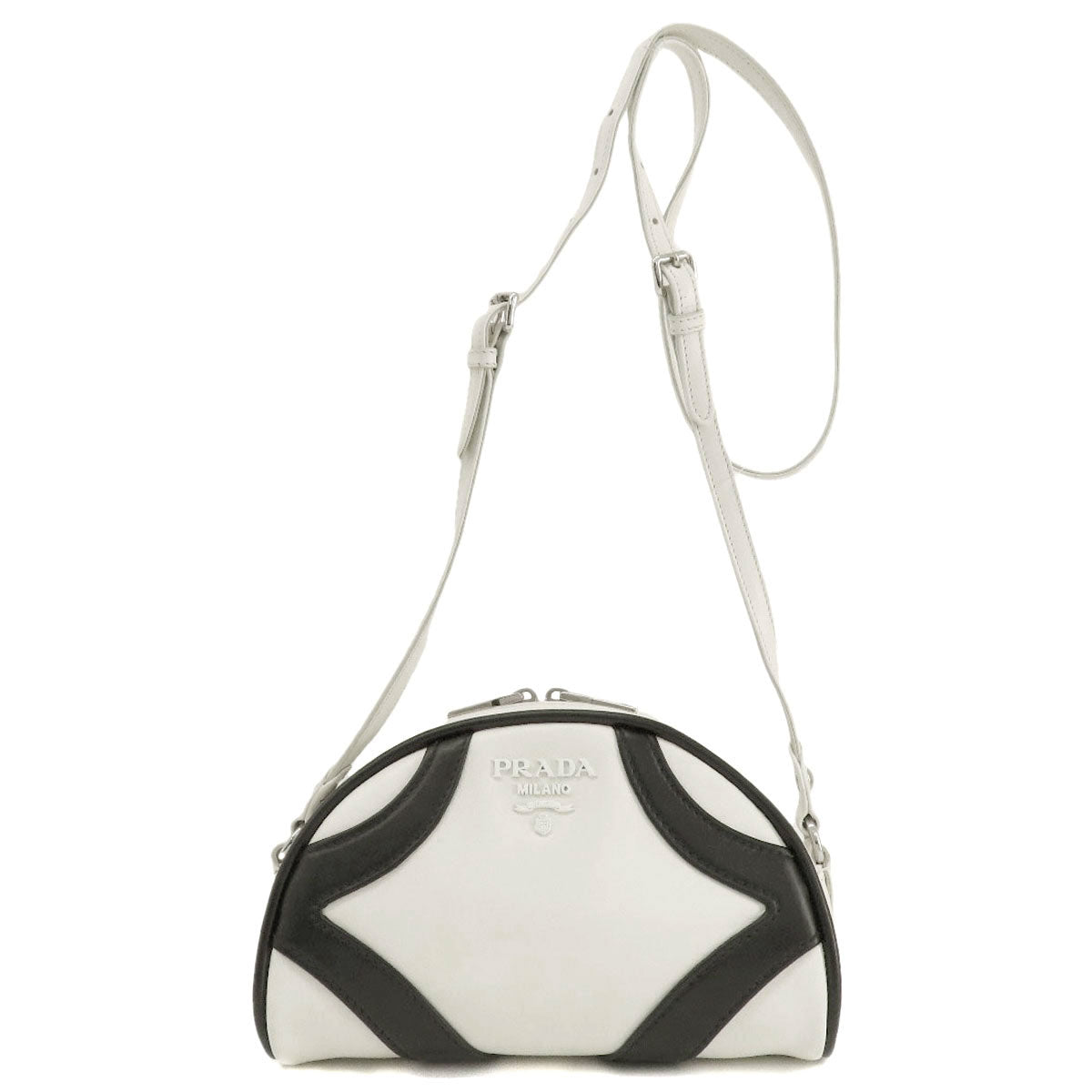 PRADA Shoulder Bag 1BH104 Safiano leather White / black logo Women Used Authentic