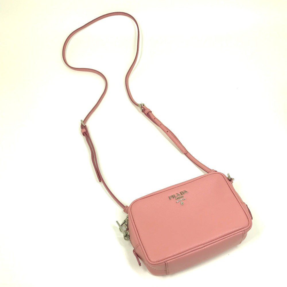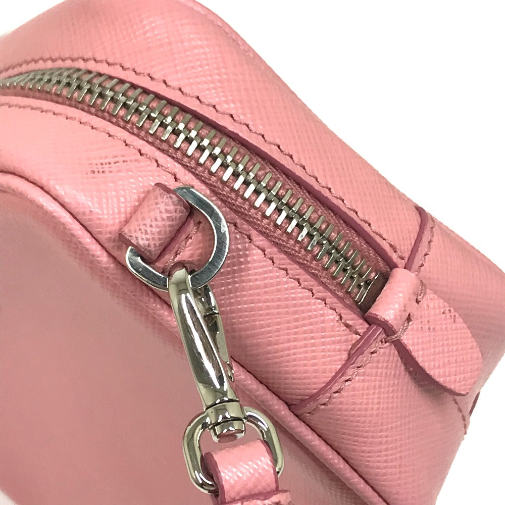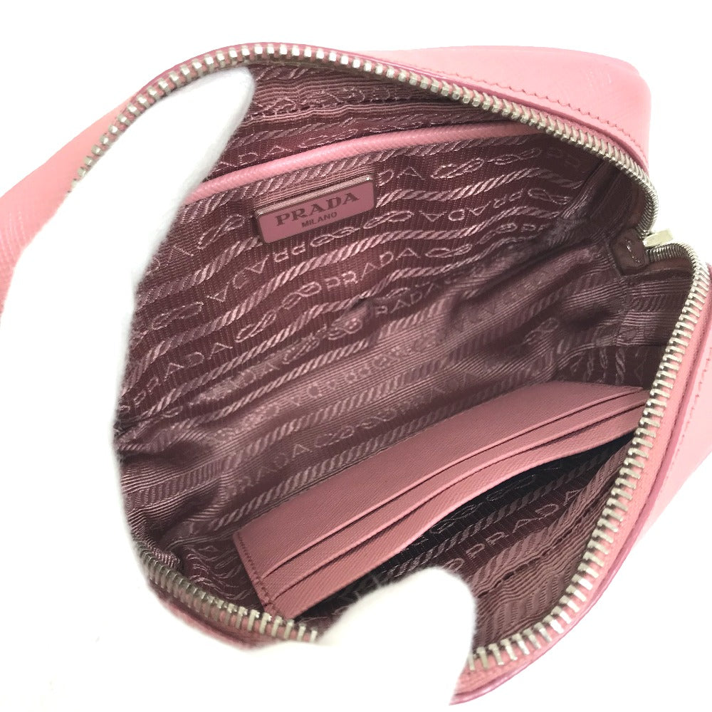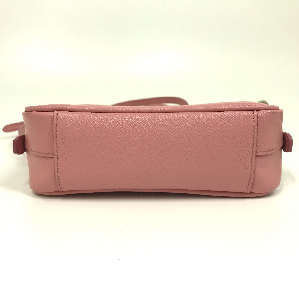 PRADA Shoulder Bag 1NF674 Safiano leather pink logo Shoulder pouch Women Used Authentic