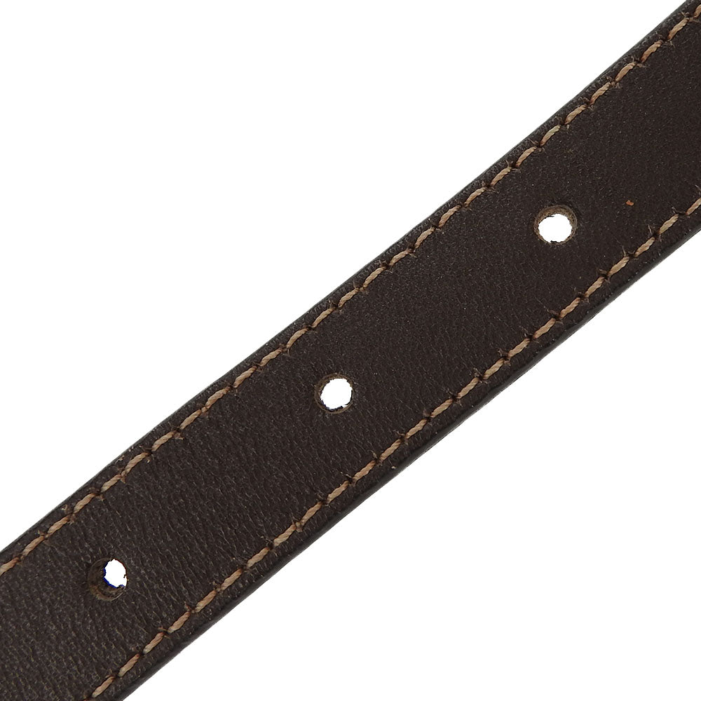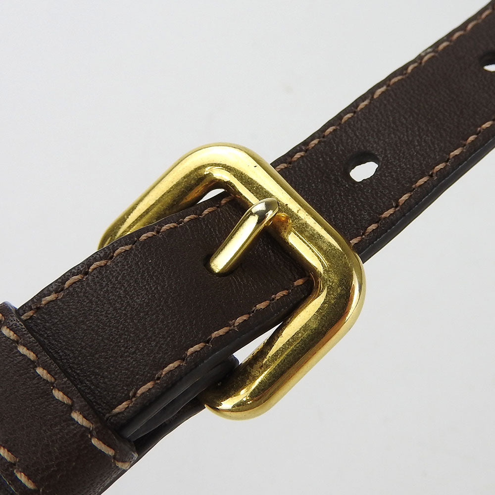 Remark Details:Leather has some scratches and stains , shoulder strap has some rubbed edges , and belt holes have some holes.