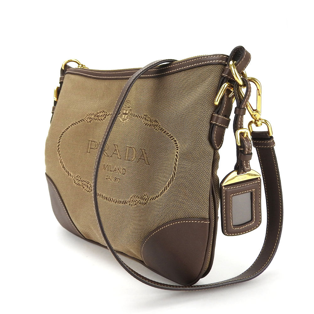 PRADA Shoulder Bag Canvas, Leather beige Women Used Authentic