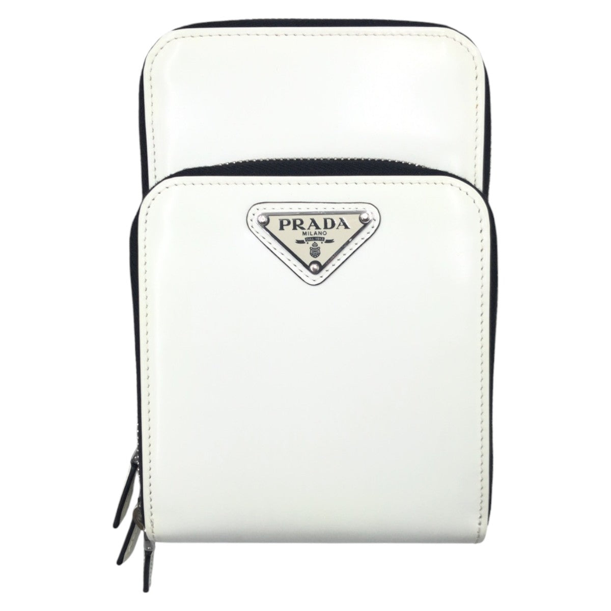 PRADA Shoulder Bag enamel white Shoulder Bag Pochette Unisex Triangular logo Women Used Authentic