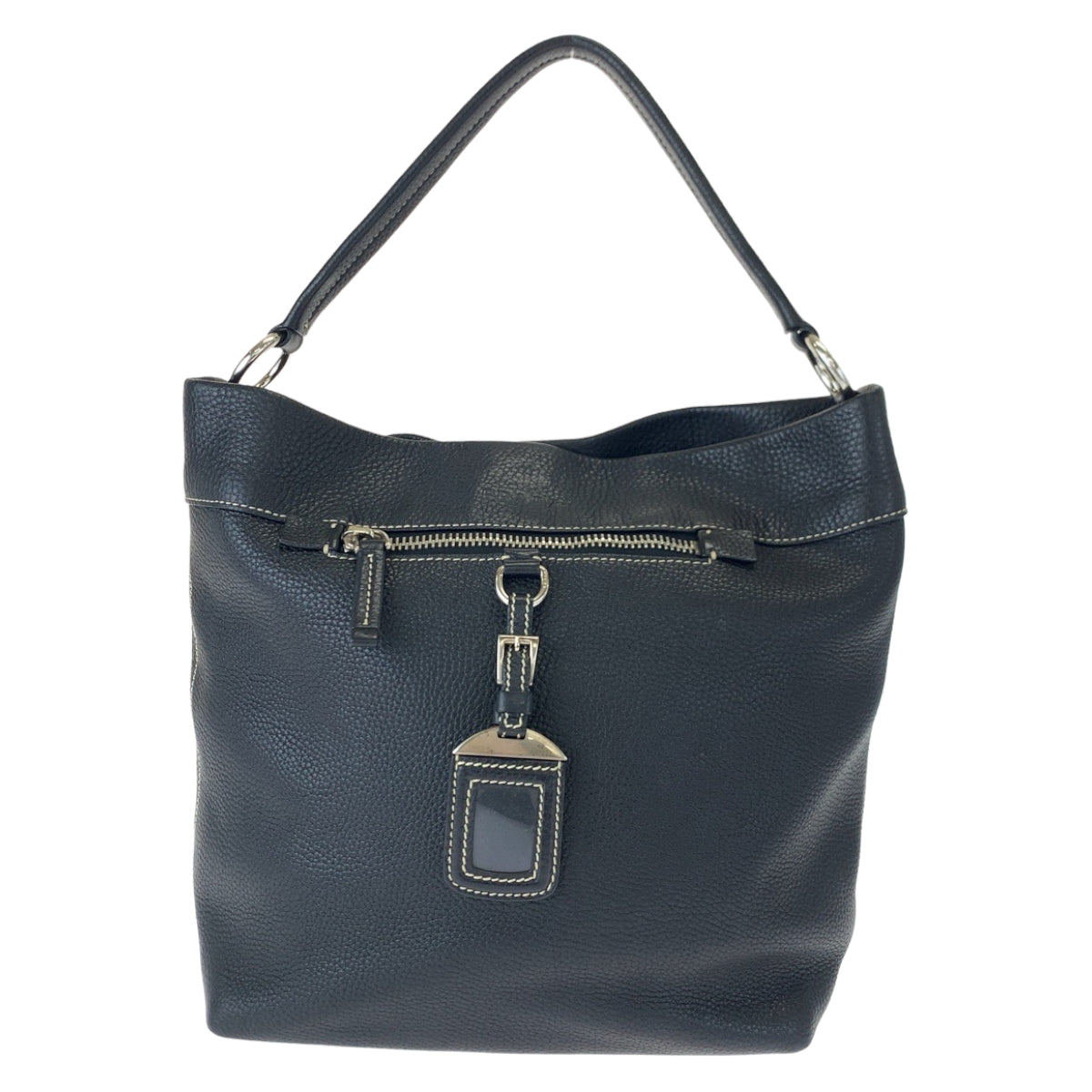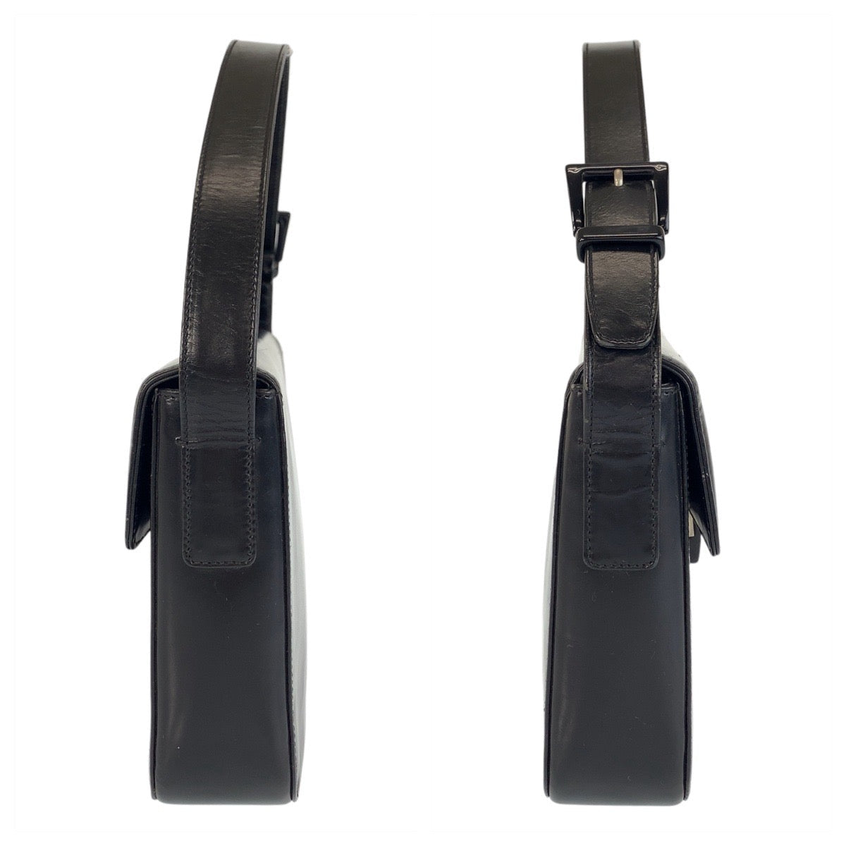 PRADA Shoulder Bag leather Black Silver Metal Shoulder Bag handbag Women Used Authentic