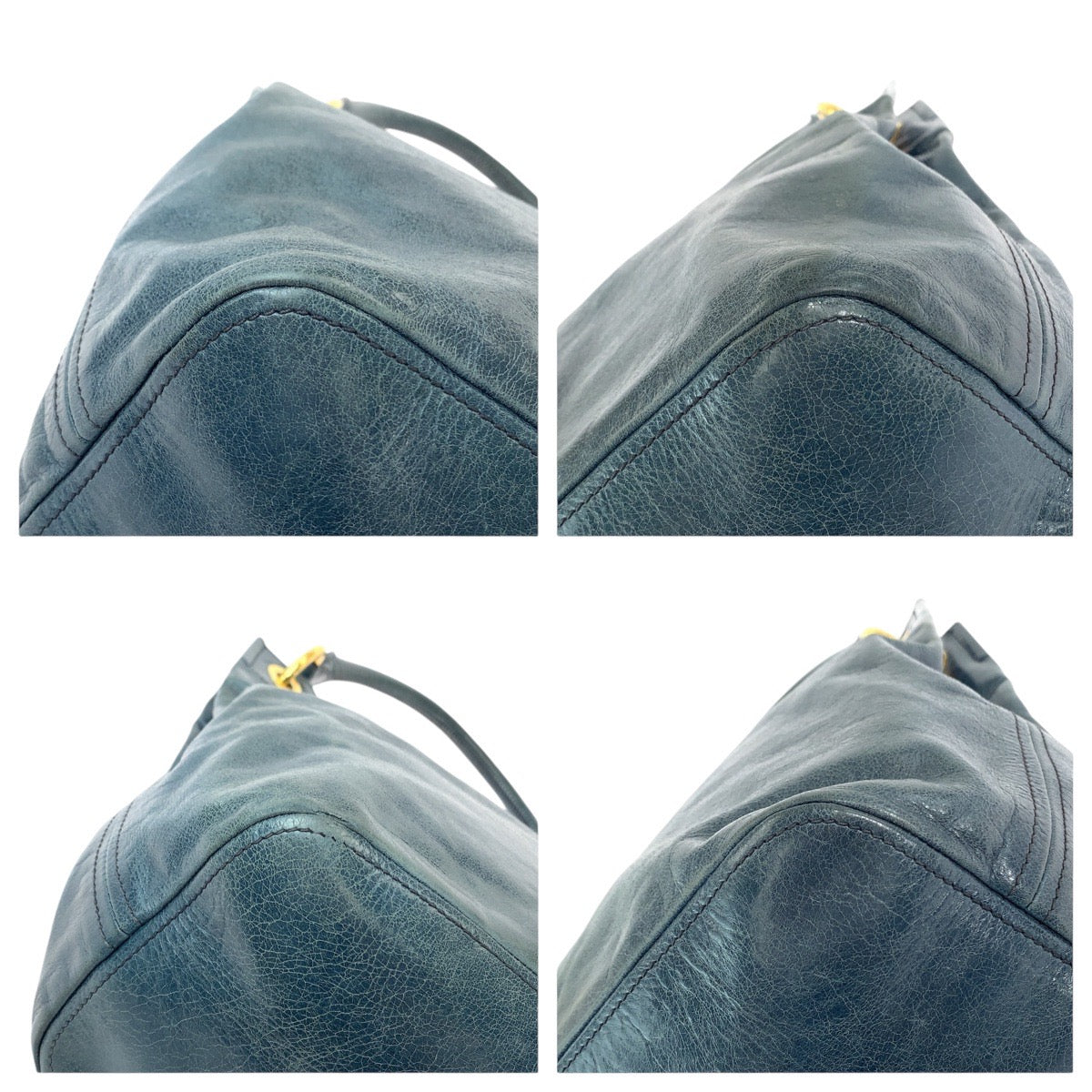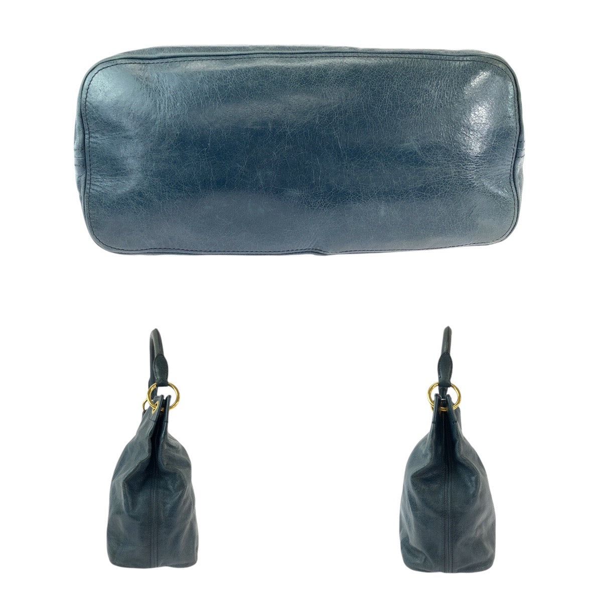 PRADA Shoulder Bag leather Blue Green Gold Metal Hobo Shoulder Bag Handbag Women Used Authentic