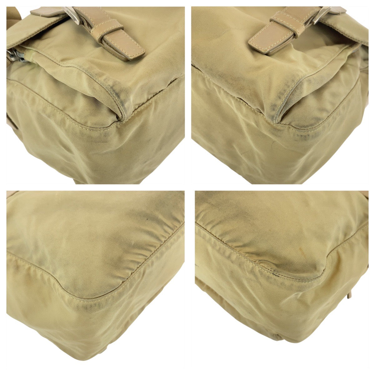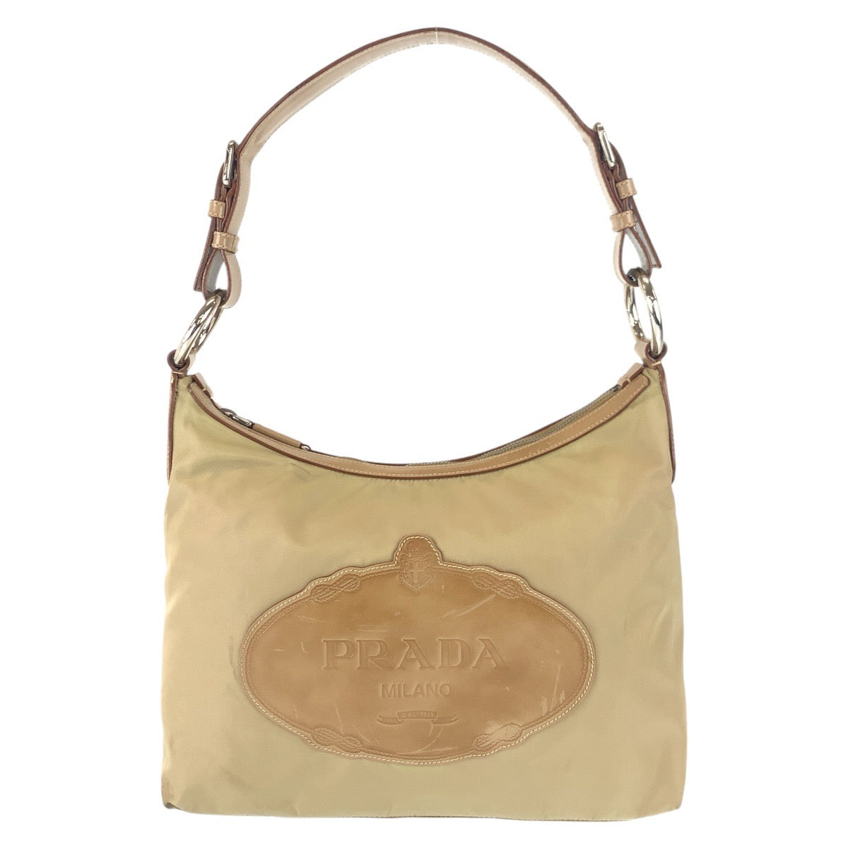 PRADA Shoulder Bag Nylon, Leather Beige Brown SilverMetal Shoulder Bag Messenger bag Test Triangle With logo Women Used Authentic