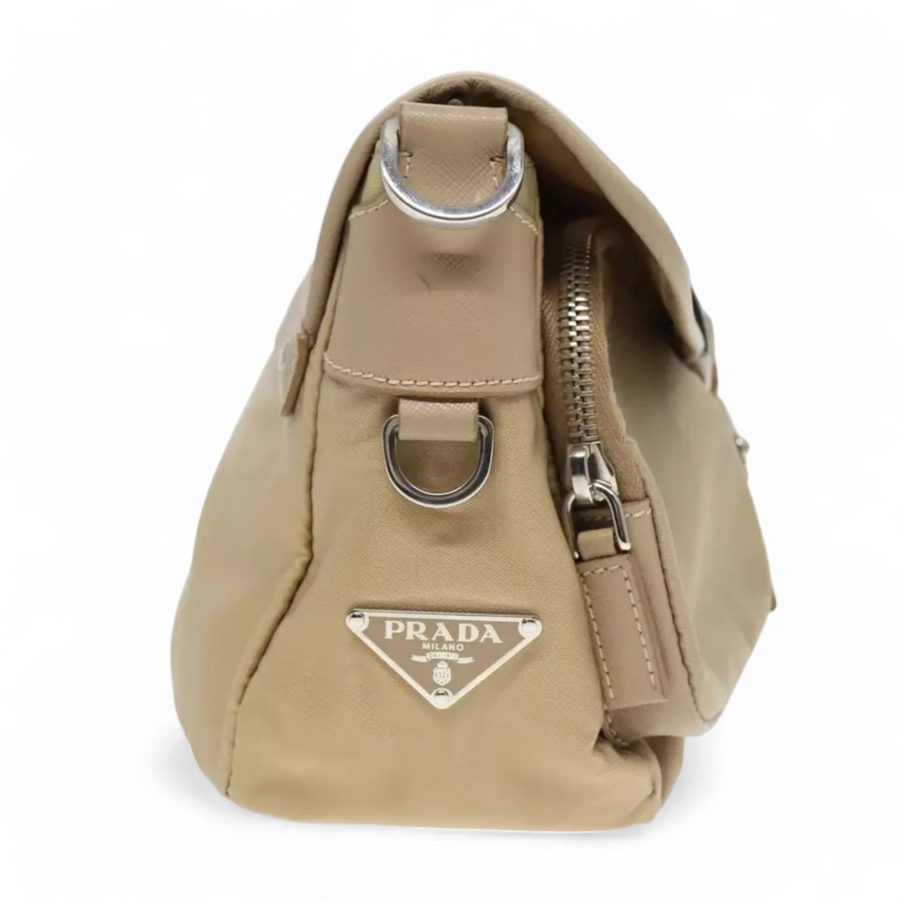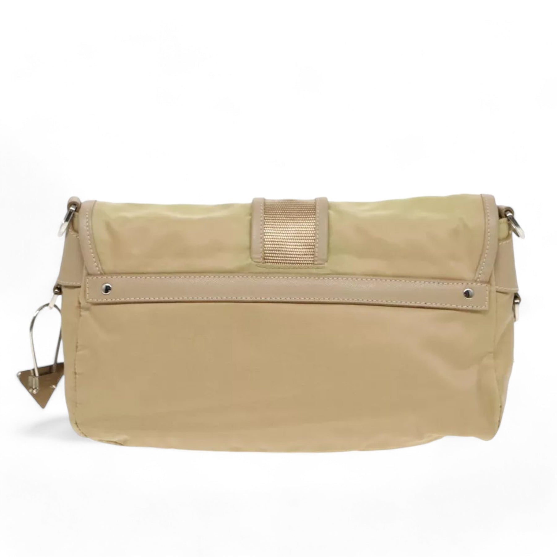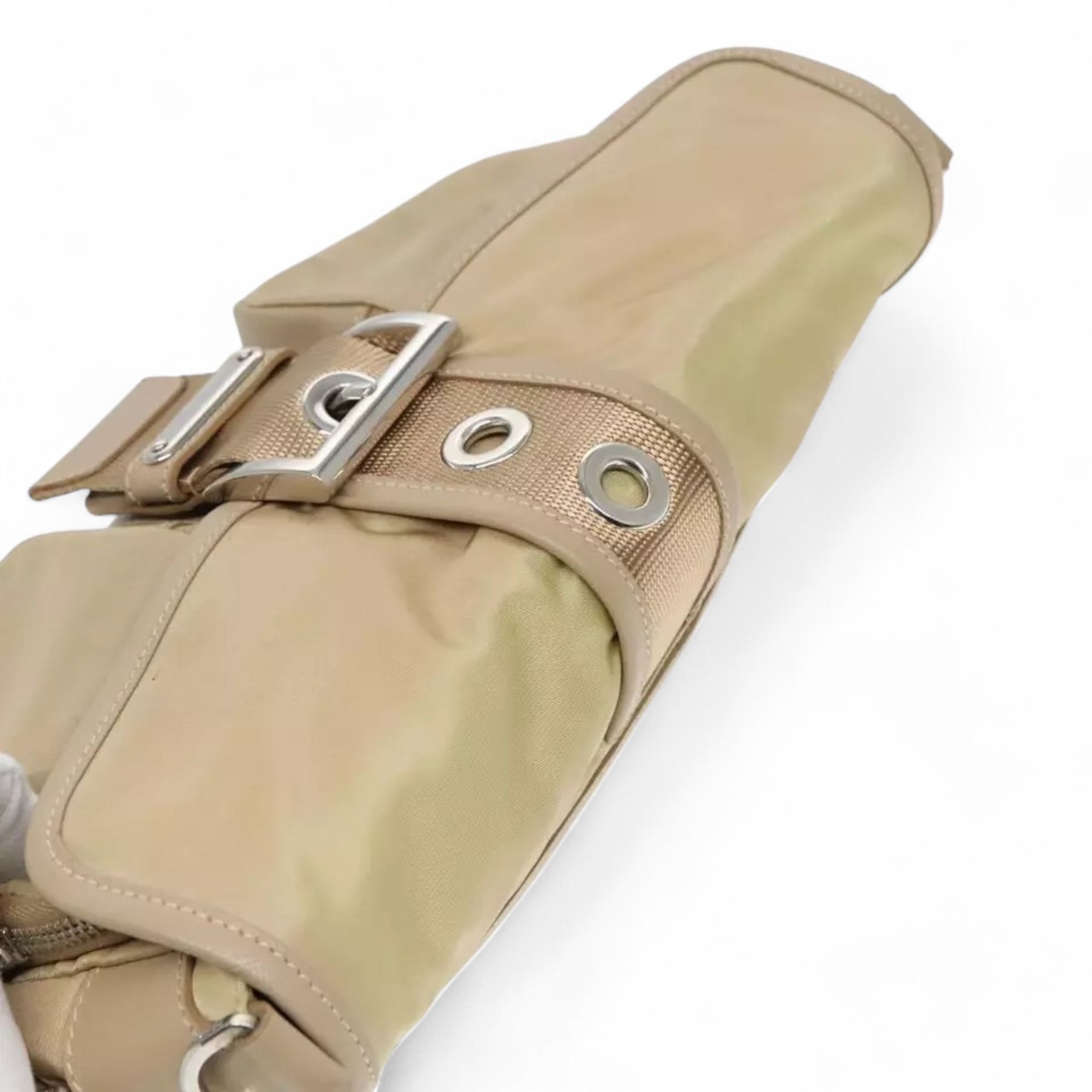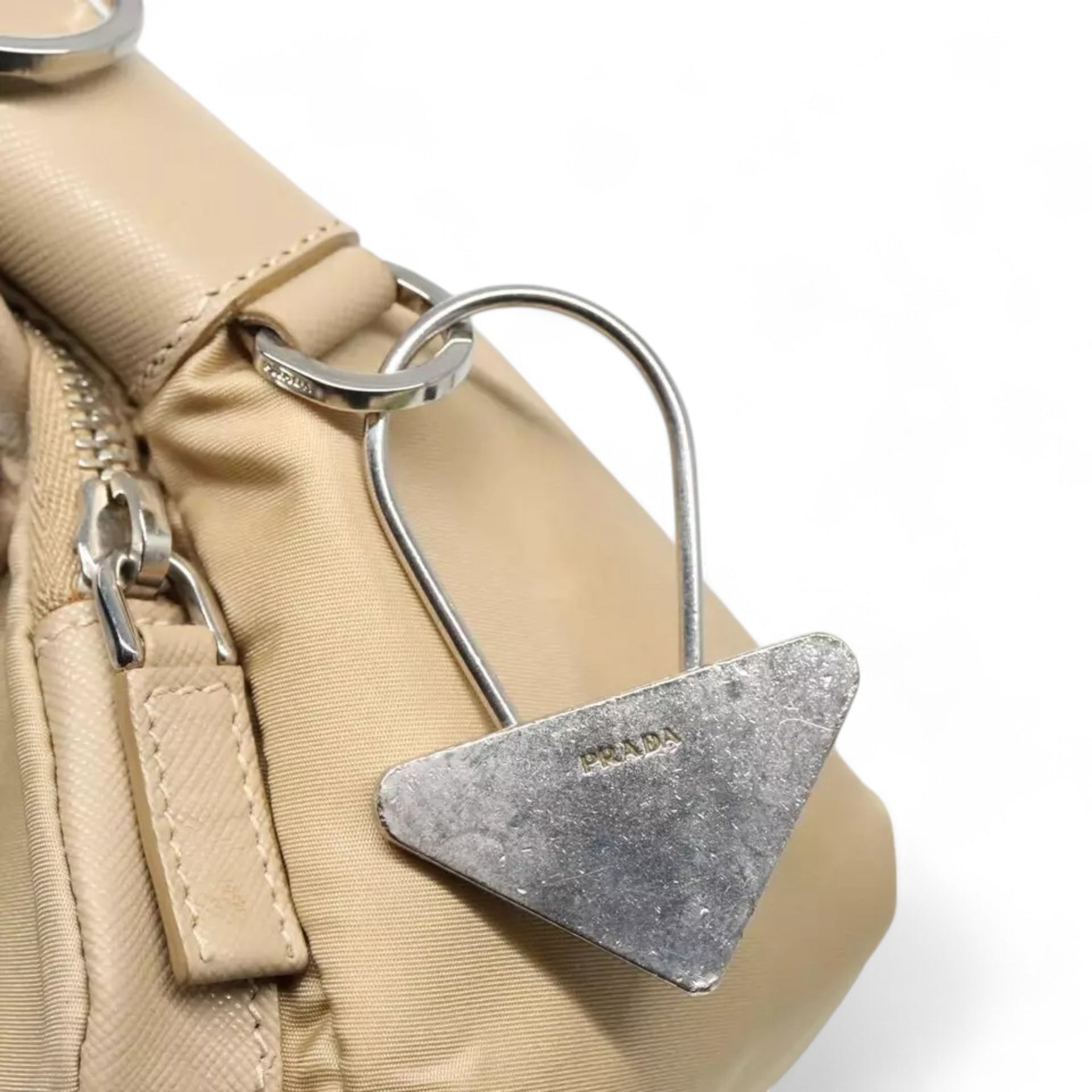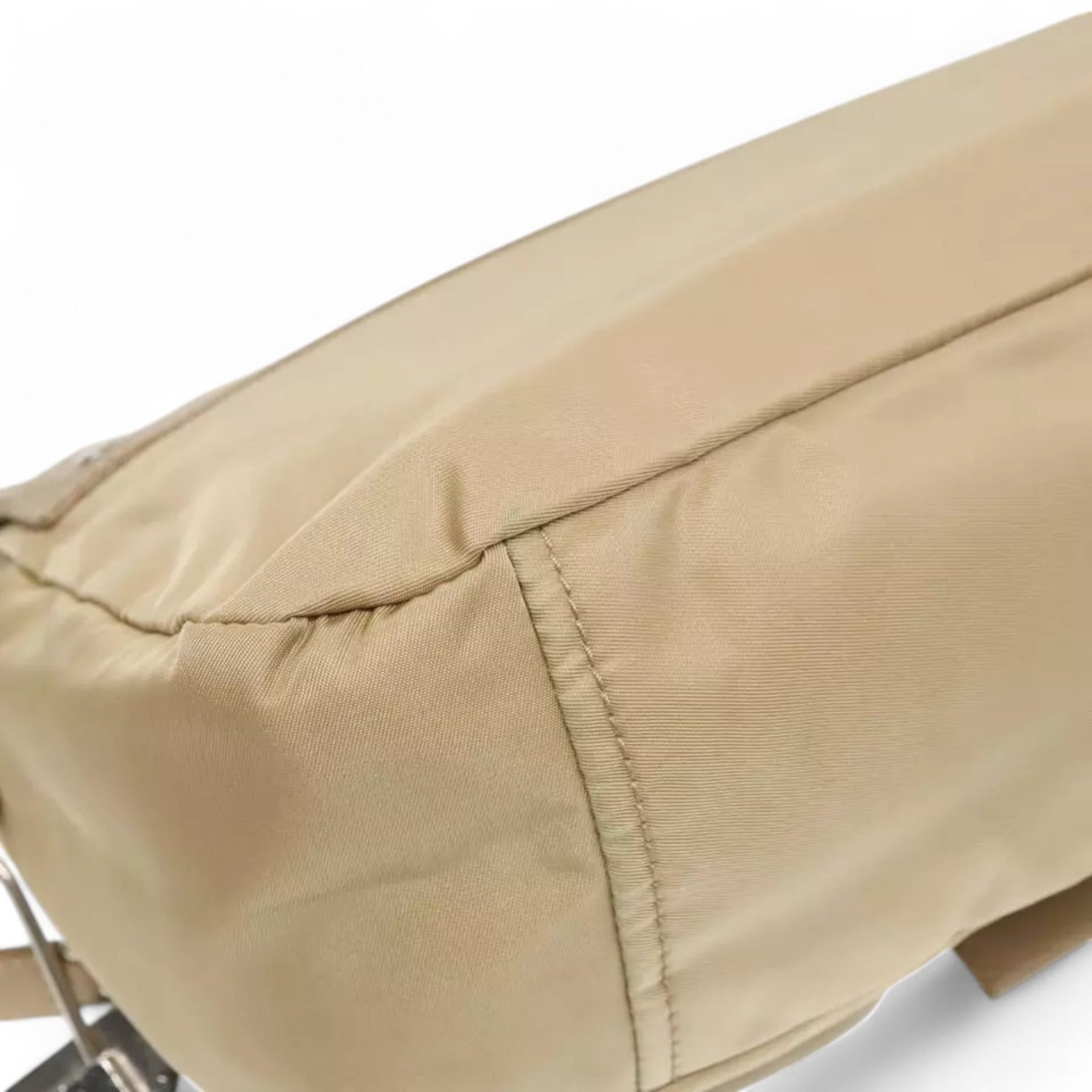 Condition - Color transfer, shape loss, rubbing, and fading on surface. Partly stained and rubbing on leather. Partly stained, rubbing, and deformation on shoulder strap. Slight rust and scratches on metal fittings. Slight stain, rubbing, and partly dirt on inside. Slight stain and rubbing on pocket. Rubbing on corner. Storage smell.