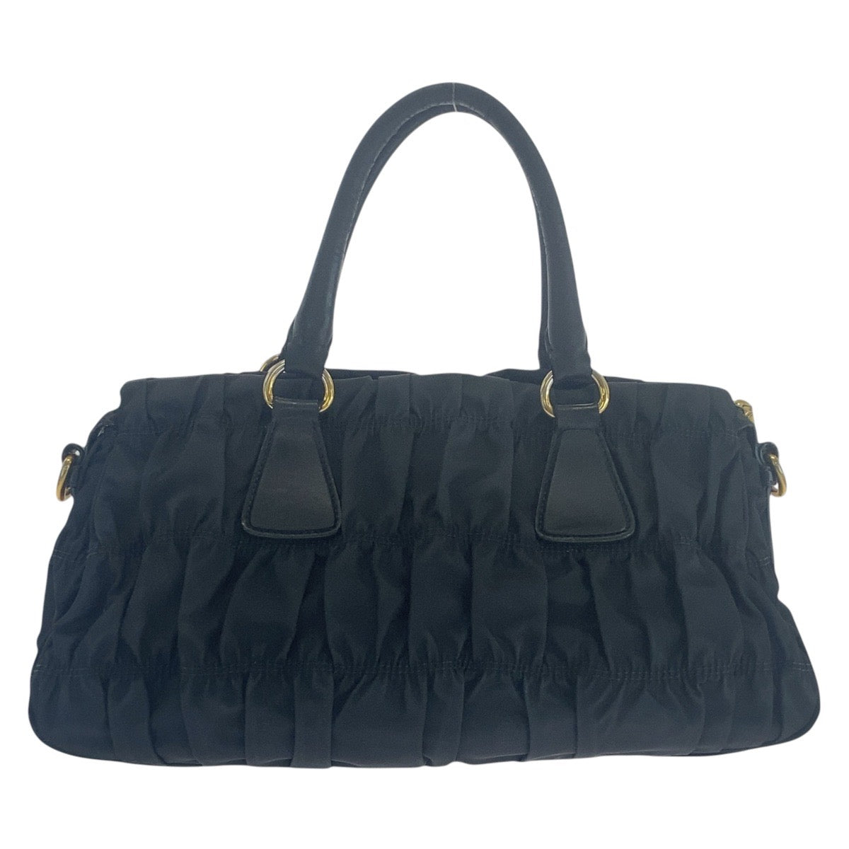 PRADA Shoulder Bag Nylon, Leather Black GoldMetal Shoulder Bag handbag Test Ruched Women Used Authentic