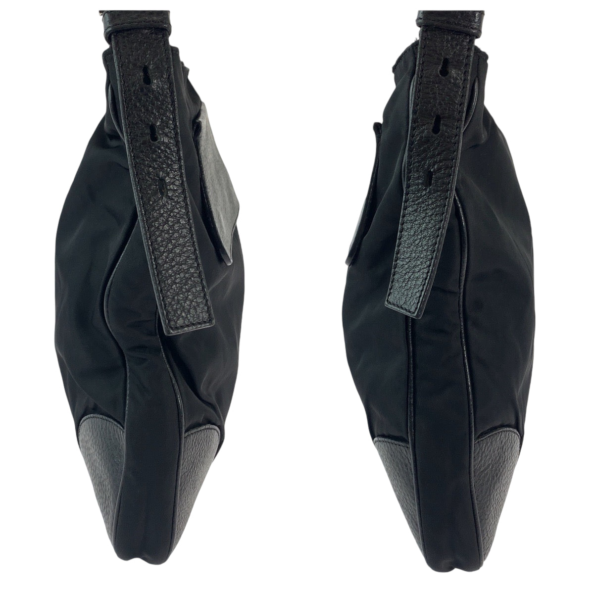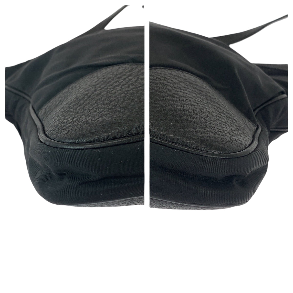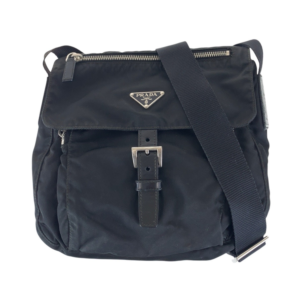 PRADA Shoulder Bag Nylon, Leather Black SilverMetal Shoulder Bag Messenger bag Tessuto Vitello Dino Triangle With logo mens Used Authentic