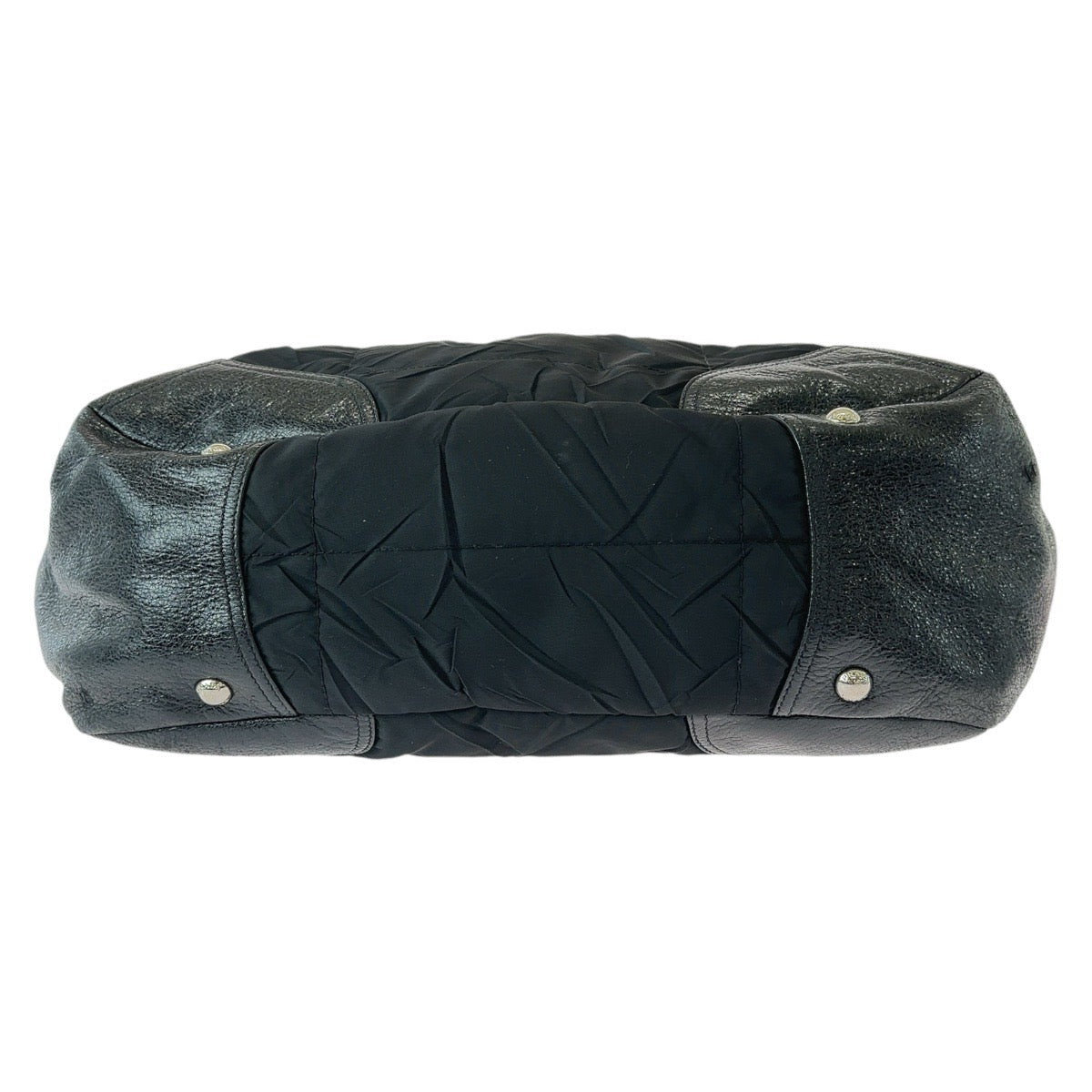 PRADA Shoulder Bag Nylon, Leather Black SilverMetal Hobo Shoulder Bag Tessuto Wrinkled Triangle With logo Women Used Authentic