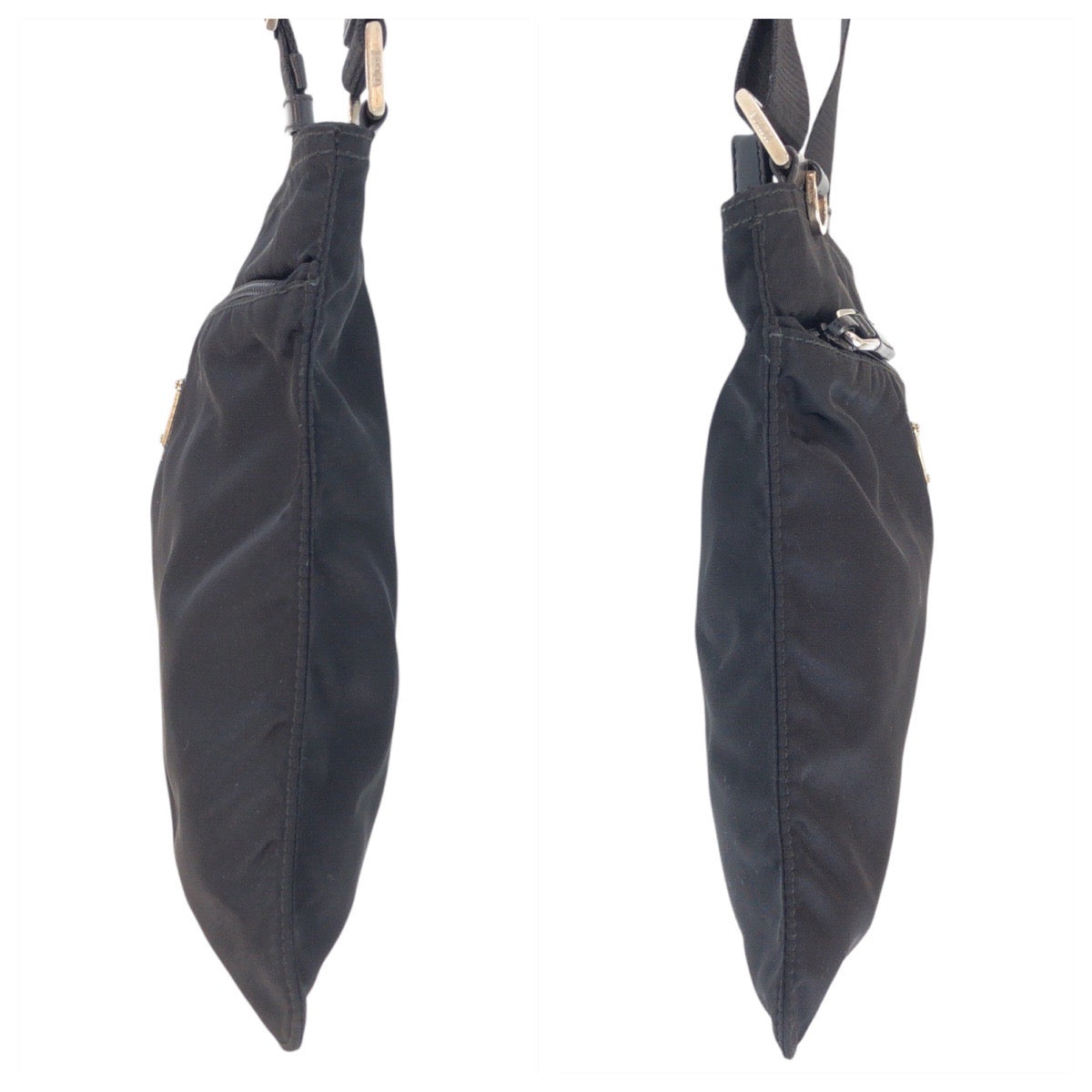 PRADA Shoulder Bag Nylon Black SilverMetal Shoulder Bag Messenger bag Test Triangle With logo Women Used Authentic