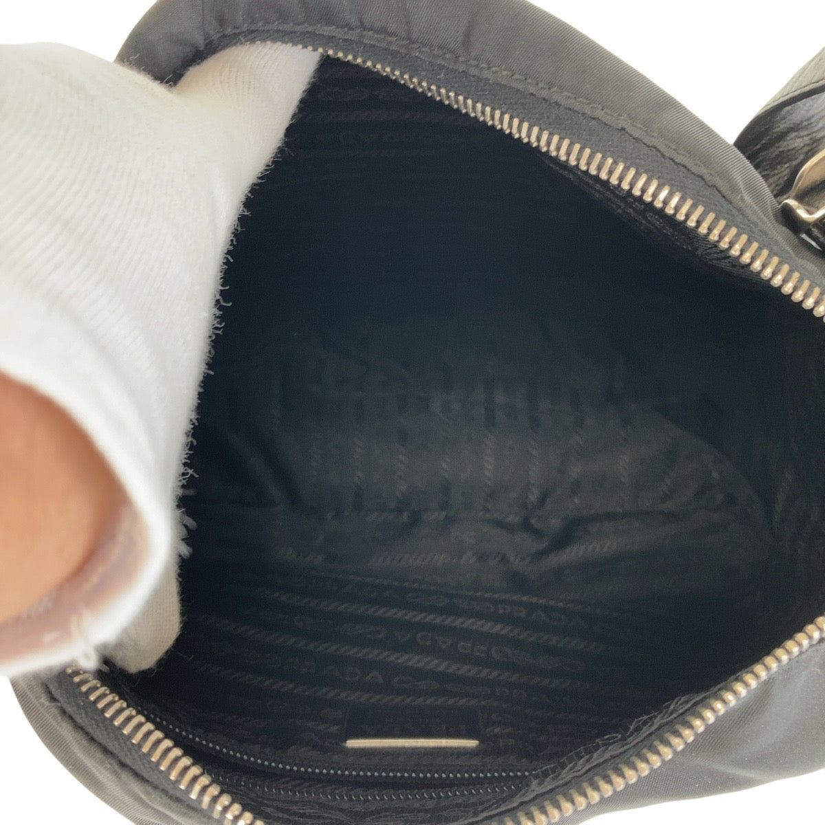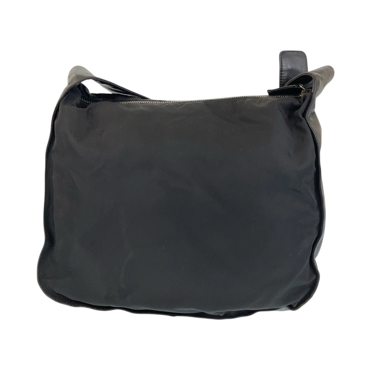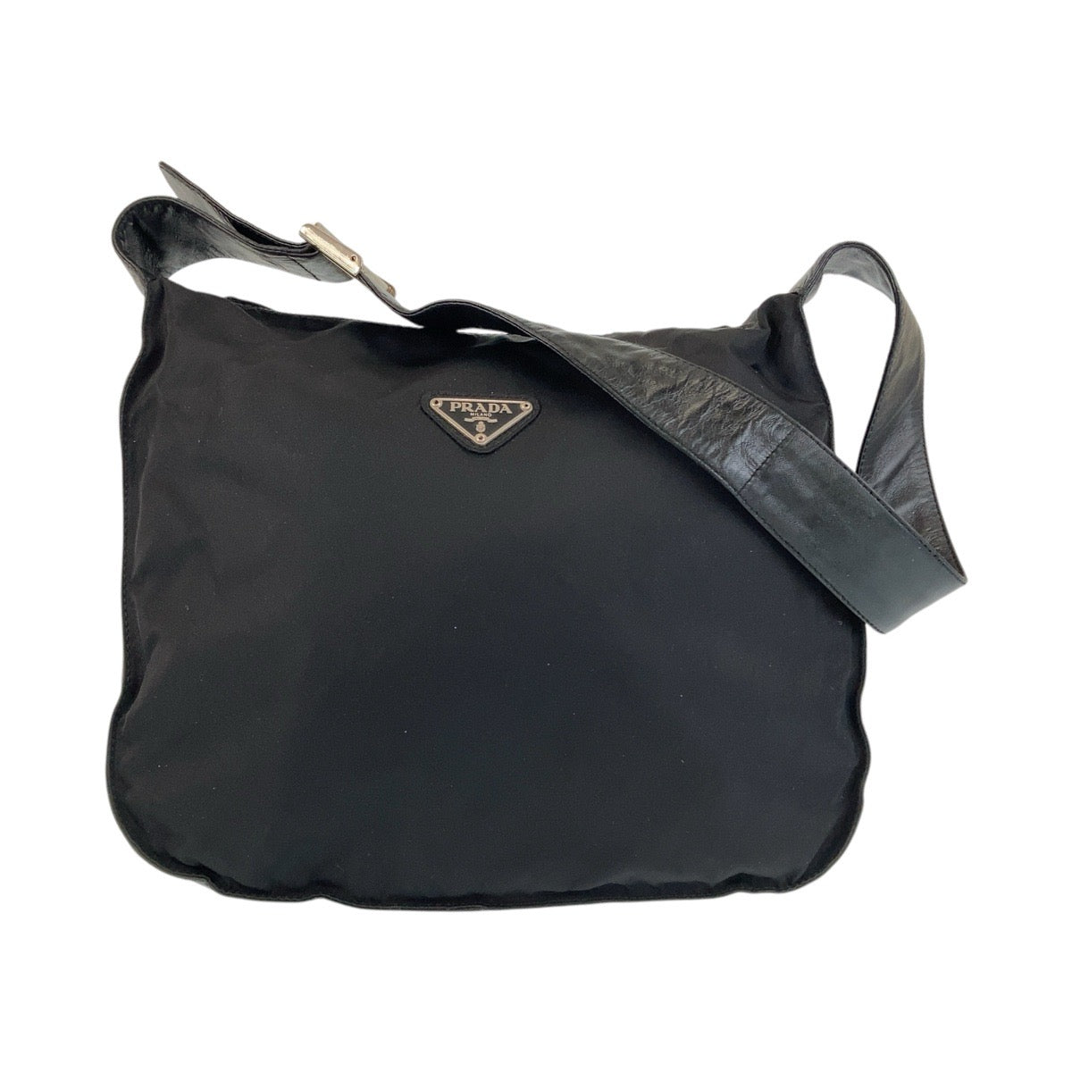 PRADA Shoulder Bag Nylon, Leather Black SilverMetal Test Triangle With logo Women Used Authentic