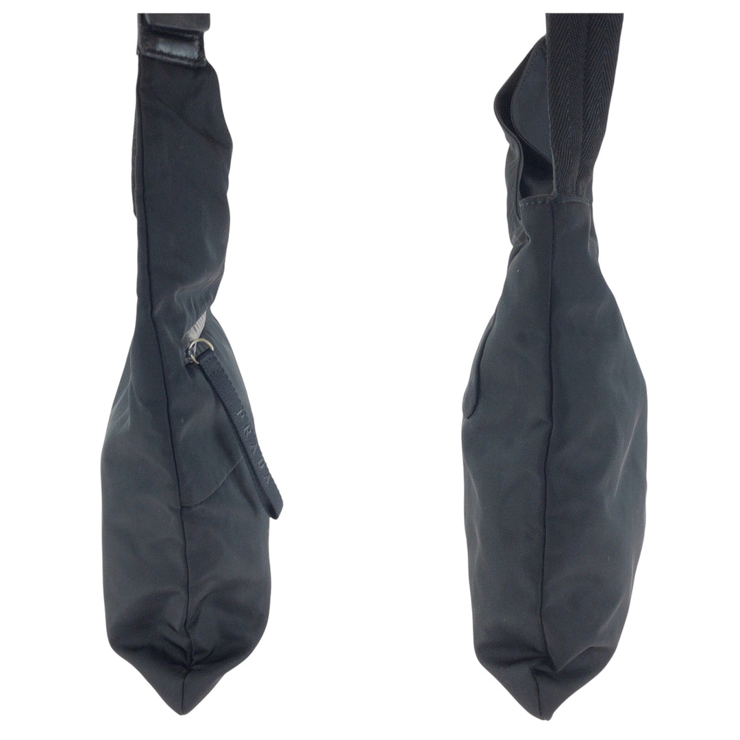 PRADA Shoulder Bag Nylon Black SilverMetal Shoulder Bag Sacoche Test Triangle With logo Women Used Authentic