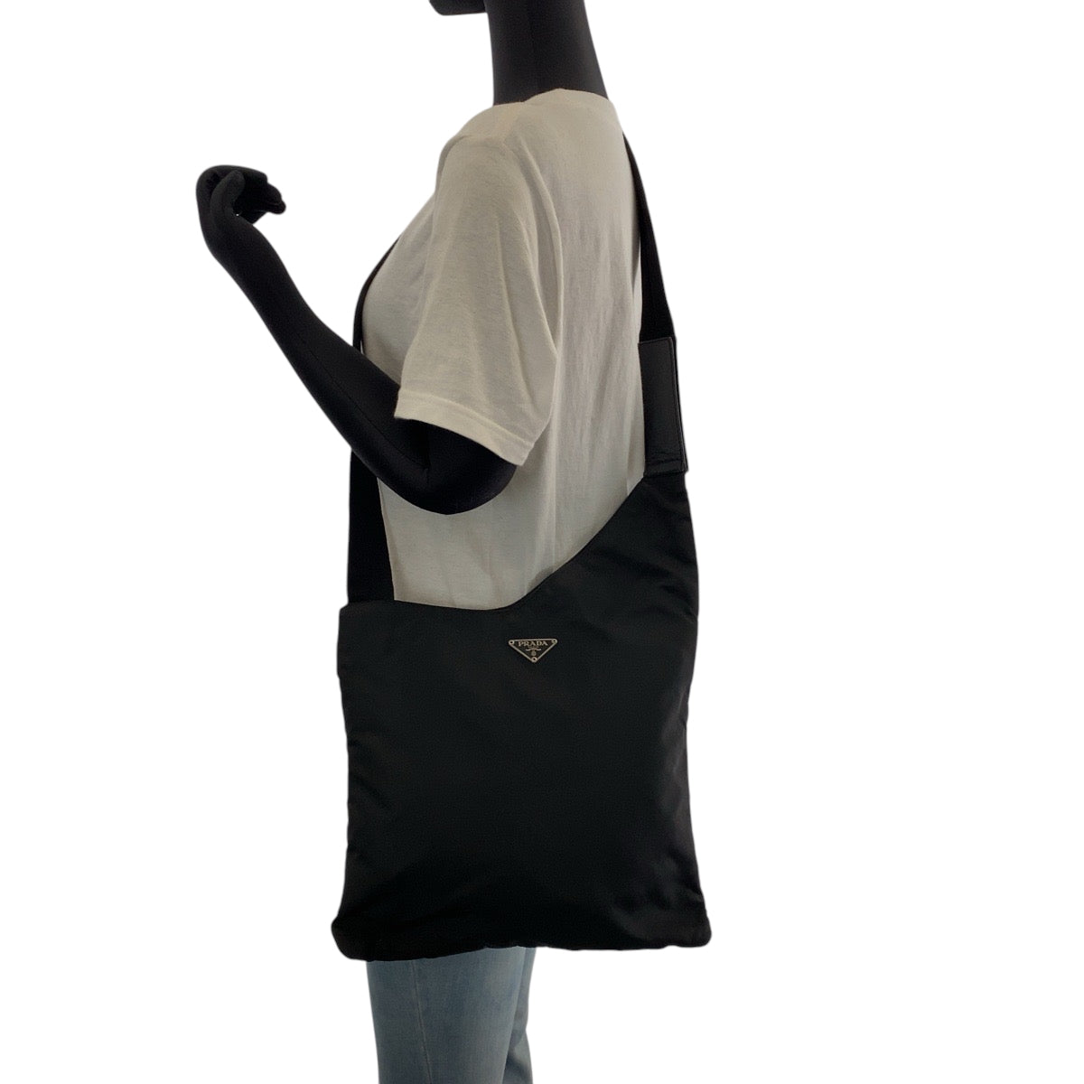 PRADA Shoulder Bag Nylon Black SilverMetal Crossbody Shoulder Bag Test Triangle With logo Women Used Authentic