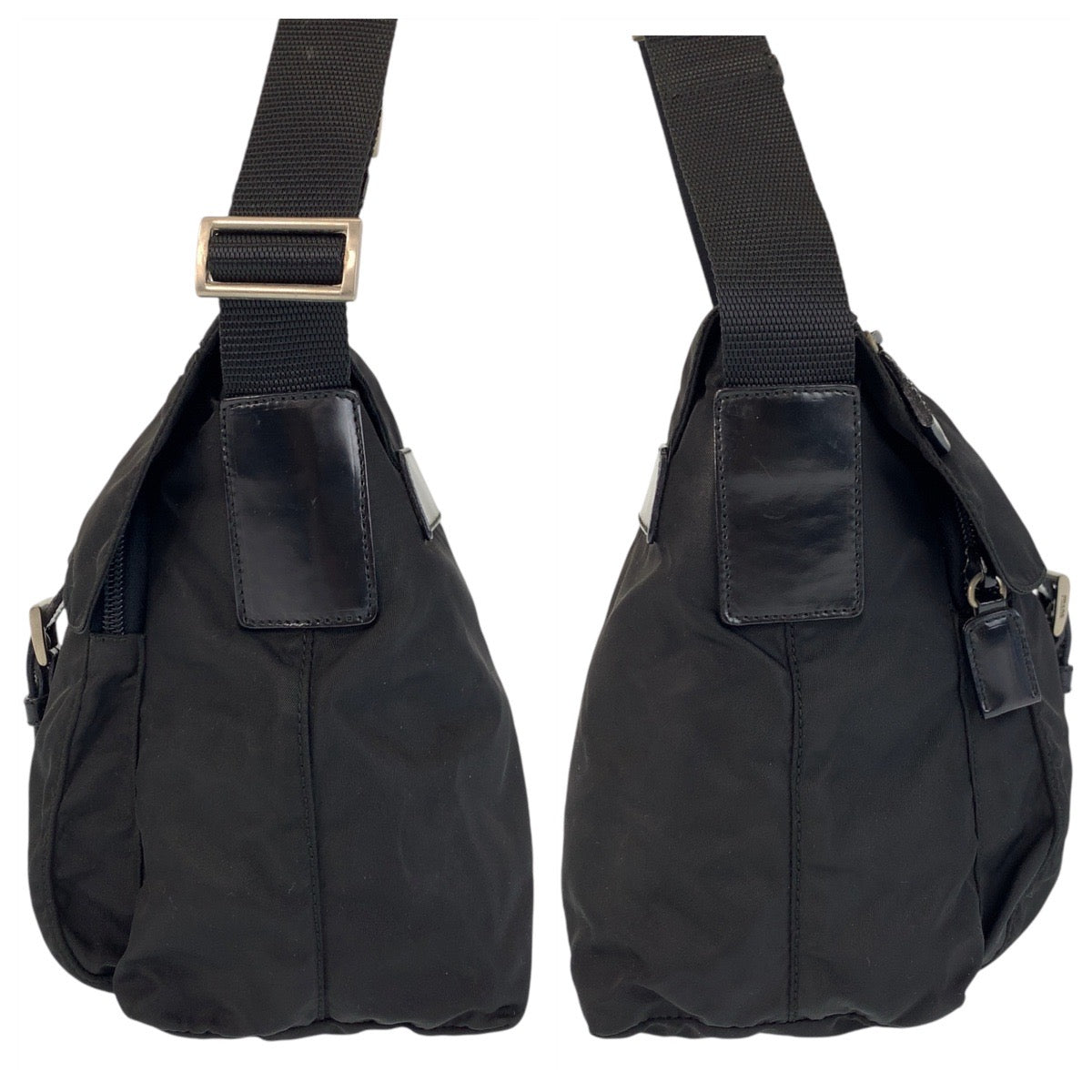 PRADA Shoulder Bag Nylon Black SilverMetal Shoulder Bag Messenger bag Test Triangle With logo Women Used Authentic