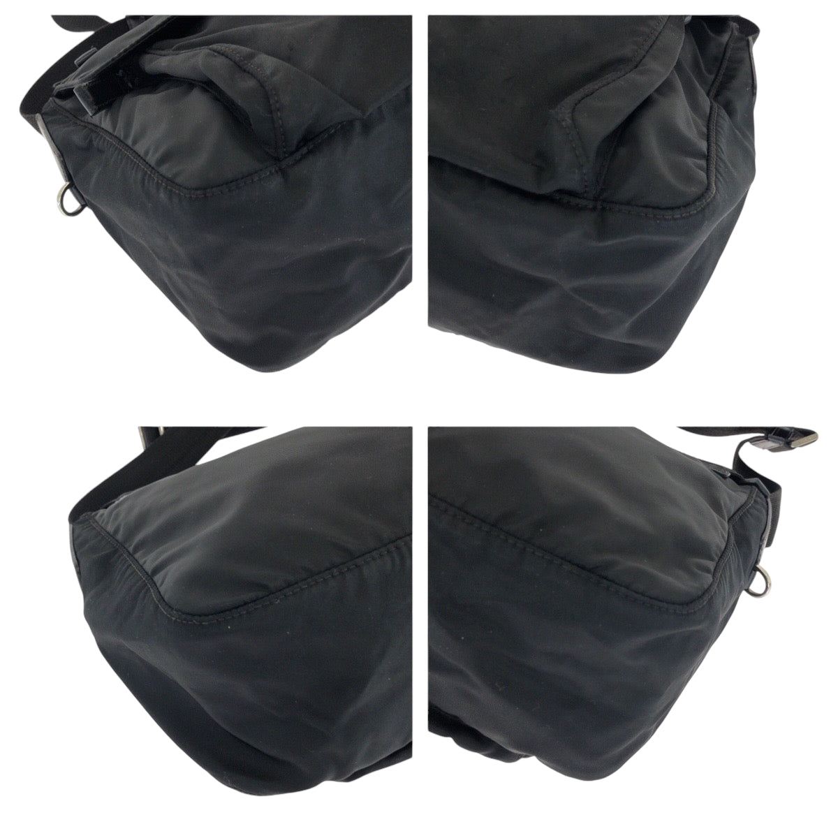 PRADA Shoulder Bag Nylon Black SilverMetal Shoulder Bag pochette Test Triangle With logo Women Used Authentic