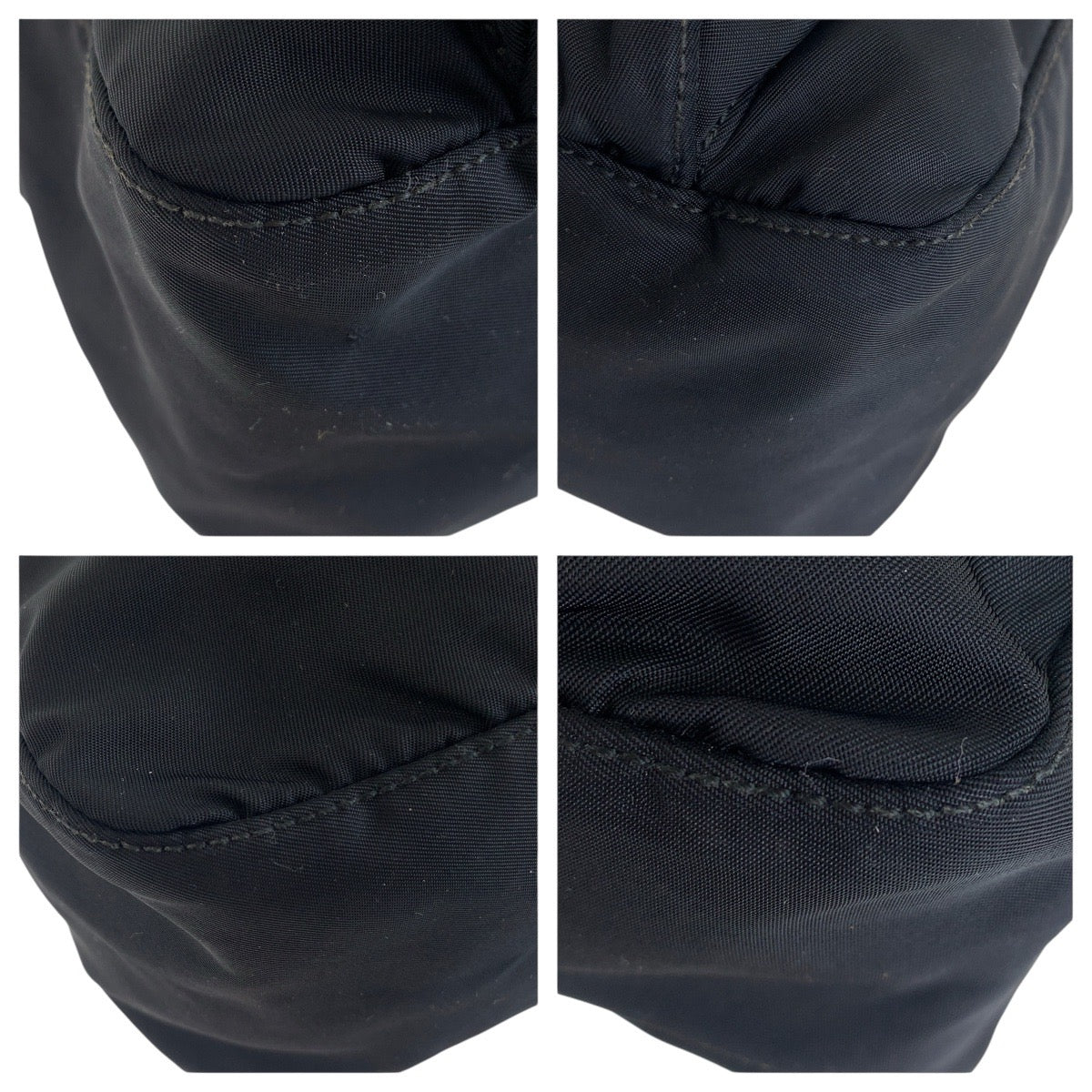 PRADA Shoulder Bag Nylon Black SilverMetal Shoulder Bag pochette Test Triangle With logo Women Used Authentic
